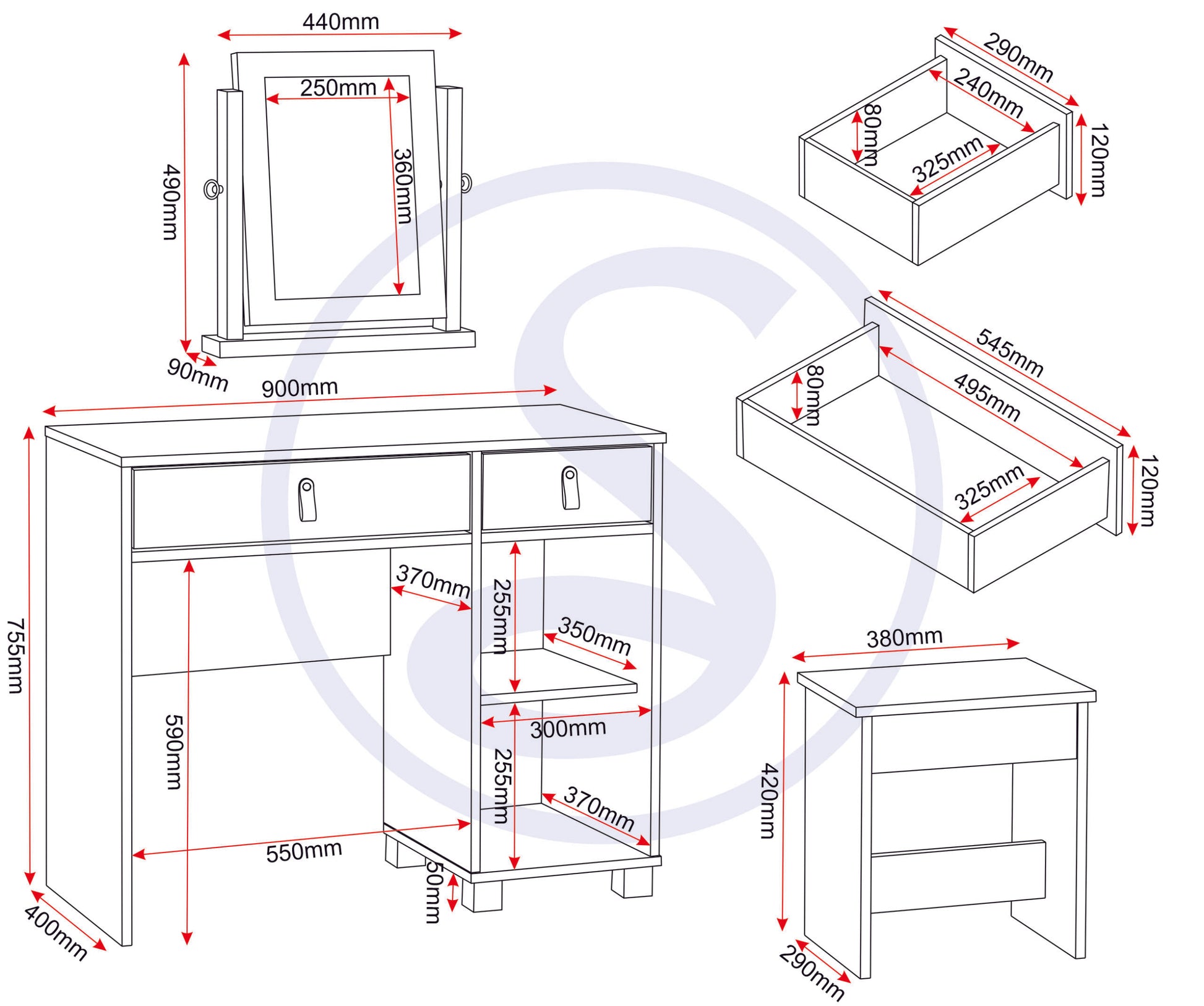 Brooklyn Dressing Table Set - Oak Effect/Grey