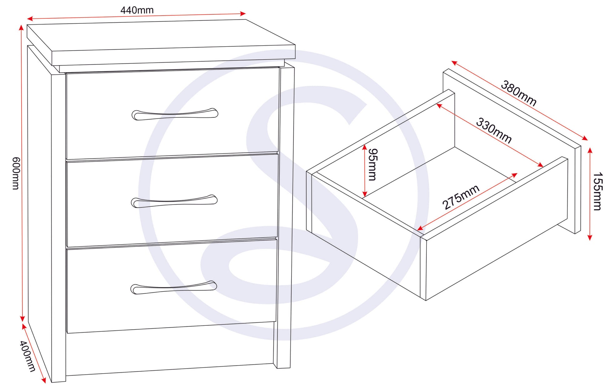 Charles 3 Drawer Bedside - Oak Effect Veneer