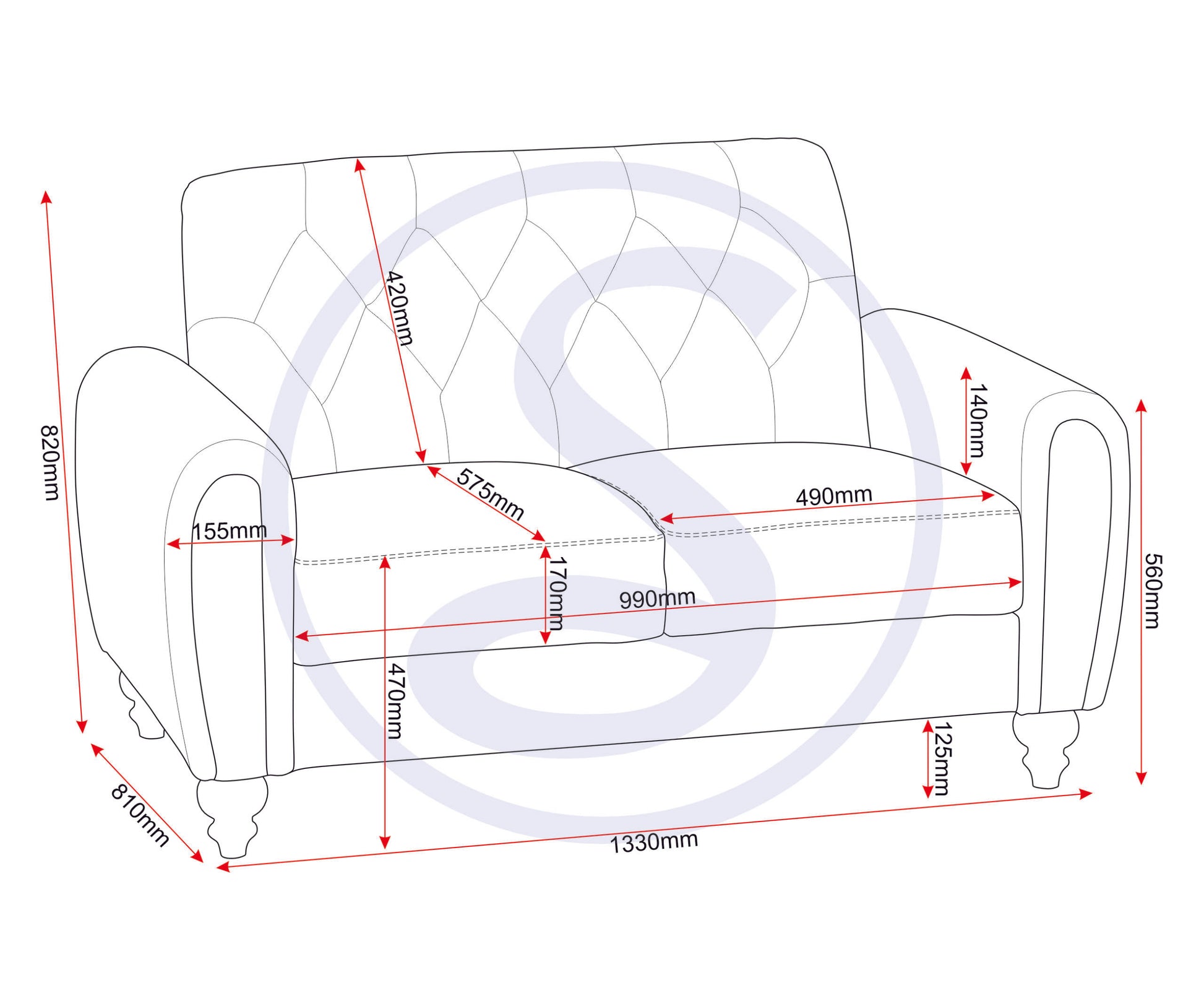 Overall Seating Area Width (2 Seater) 990mm