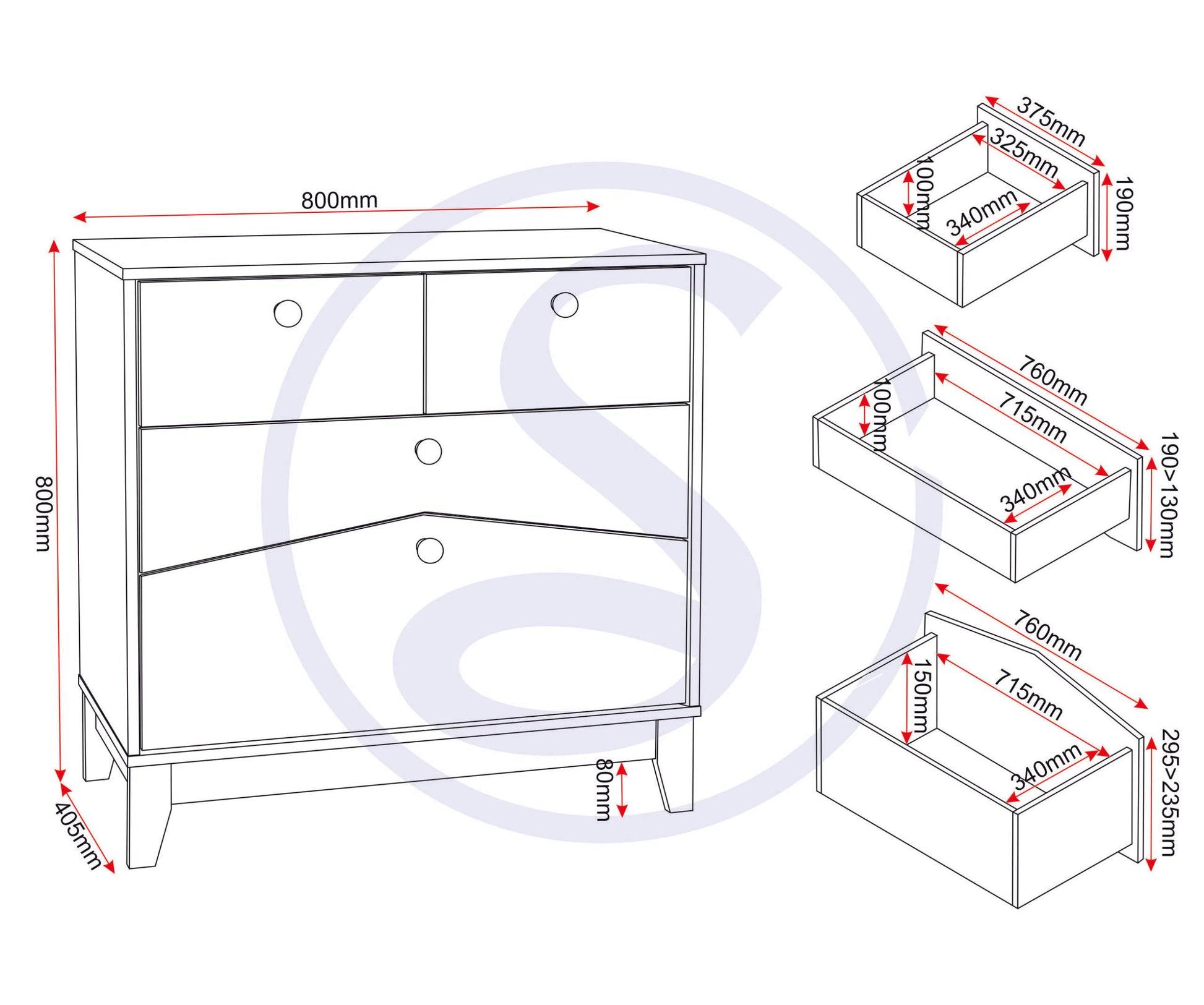 Assembled Sizes W x D x H (MM)