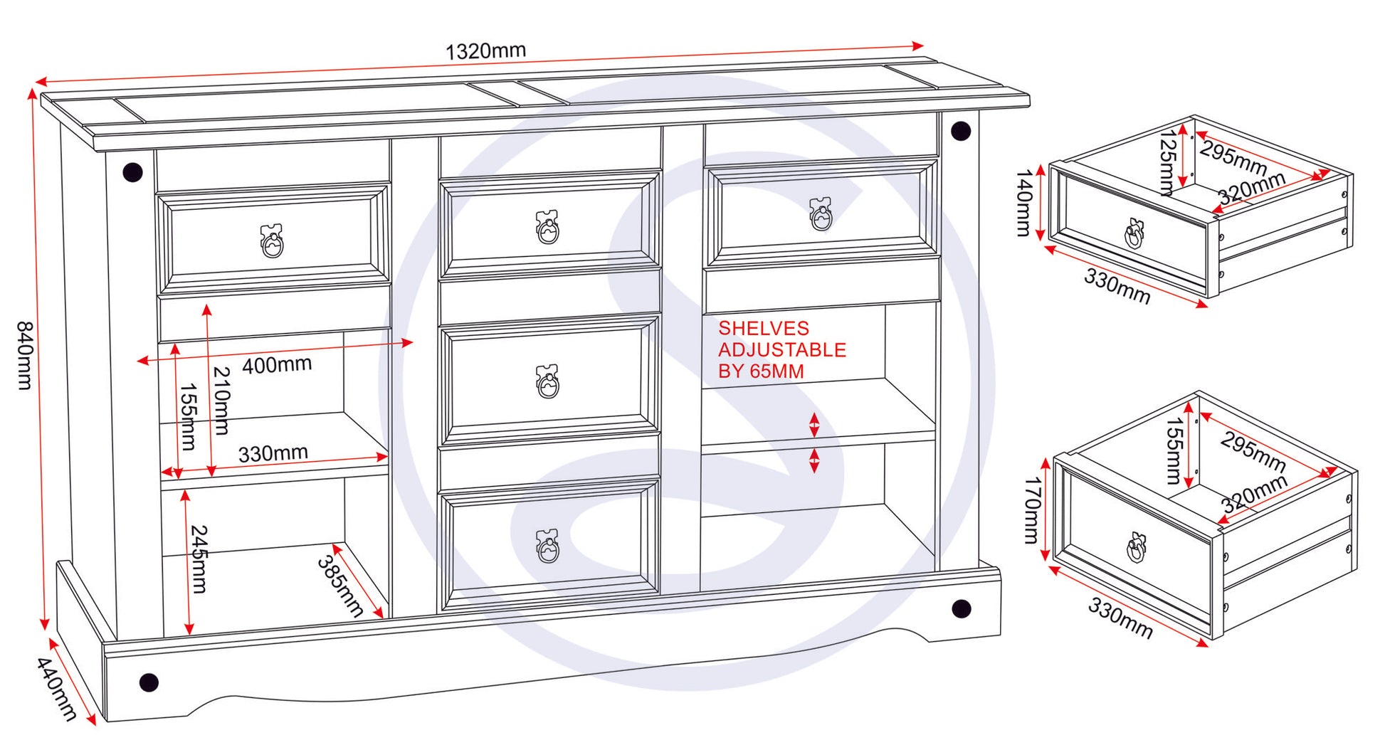 Corona 2 Door 5 Drawer Sideboard - Distressed Waxed Pine