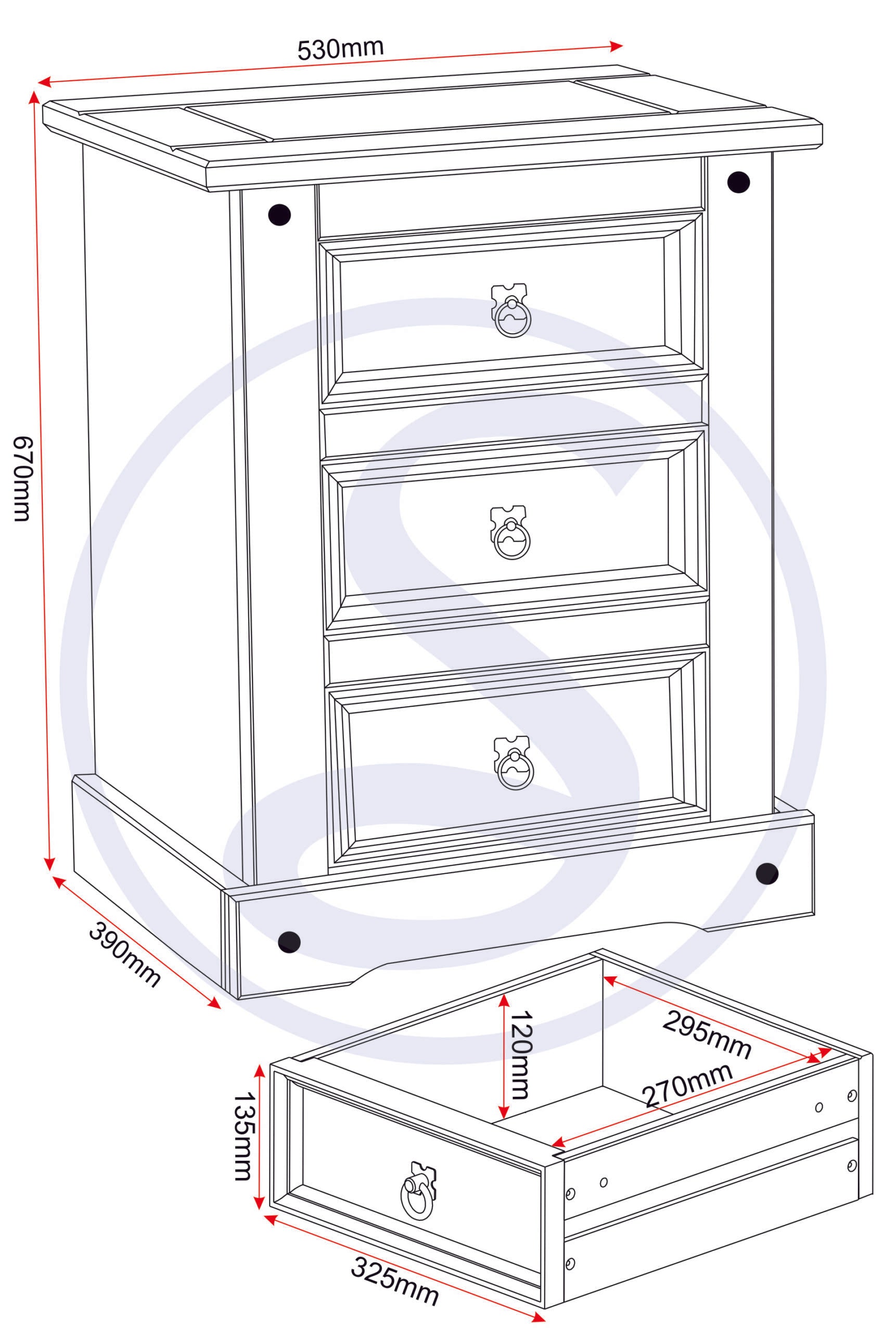 Corona 3 Drawer Bedside - Distressed Waxed Pine