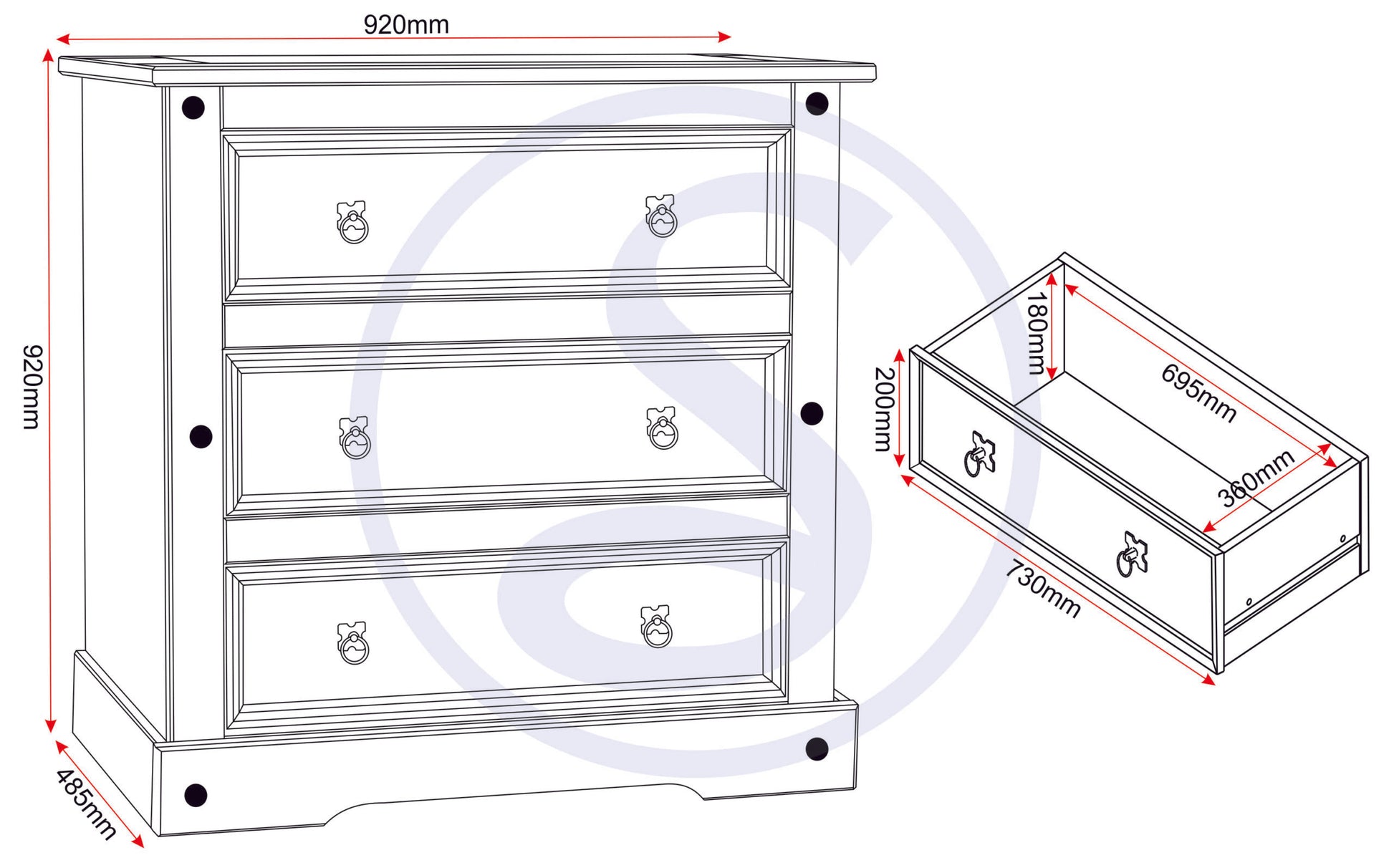 Corona 3 Drawer Chest - Distressed Waxed Pine