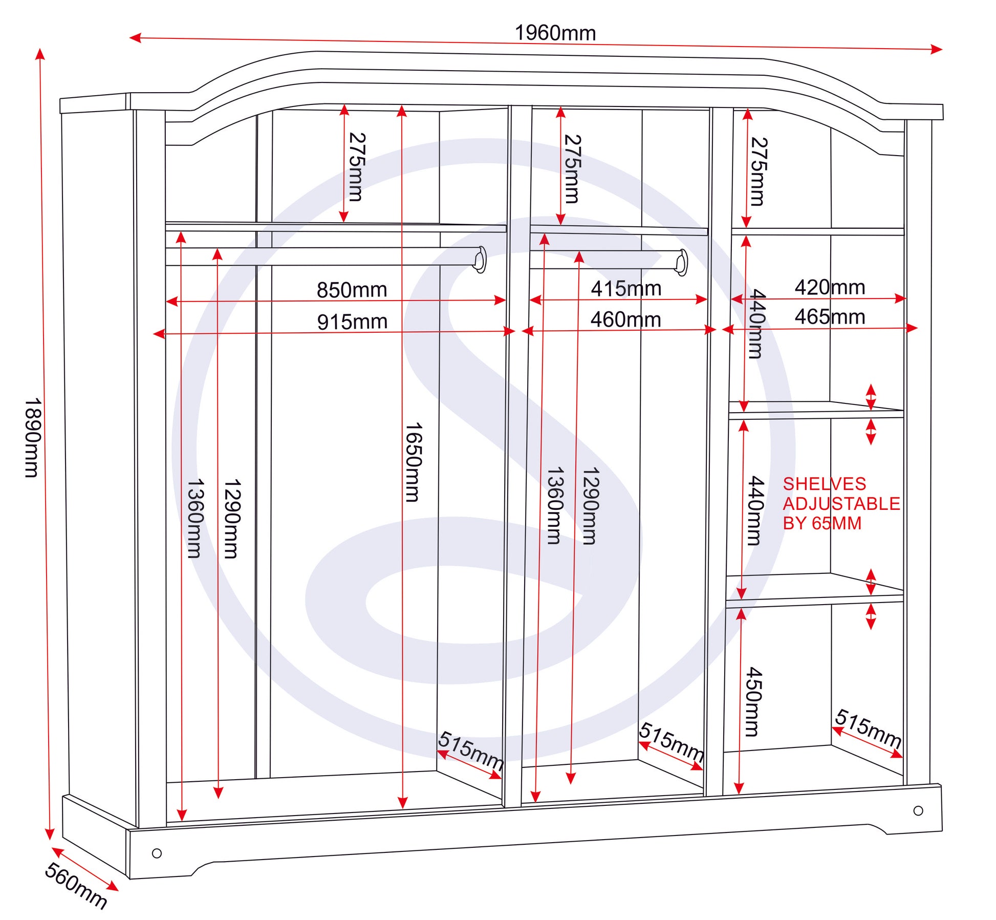 Corona 4 Door Wardrobe - Distressed Waxed Pine