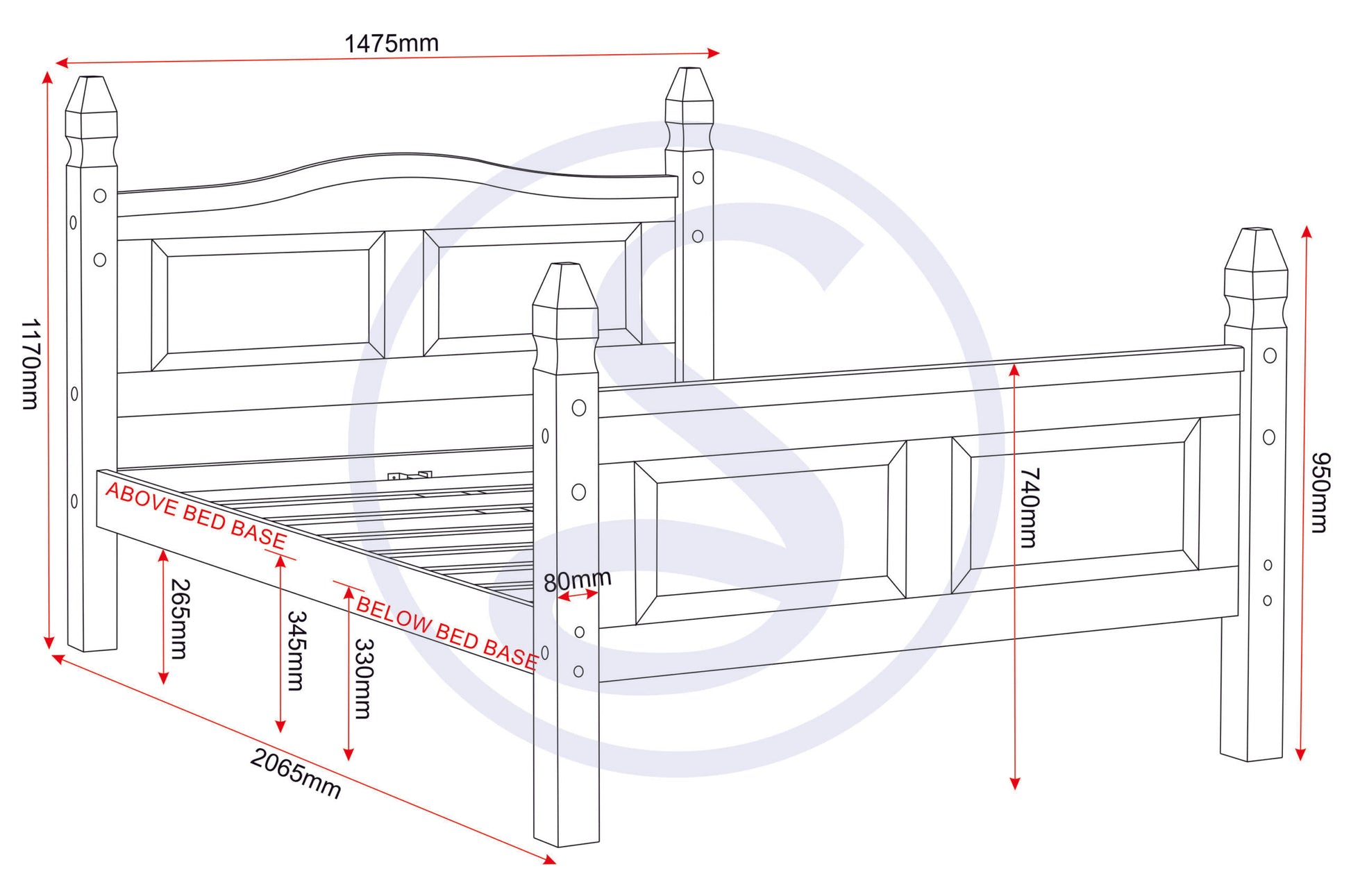 Corona 4'6" High End Bed - Distressed Waxed Pine