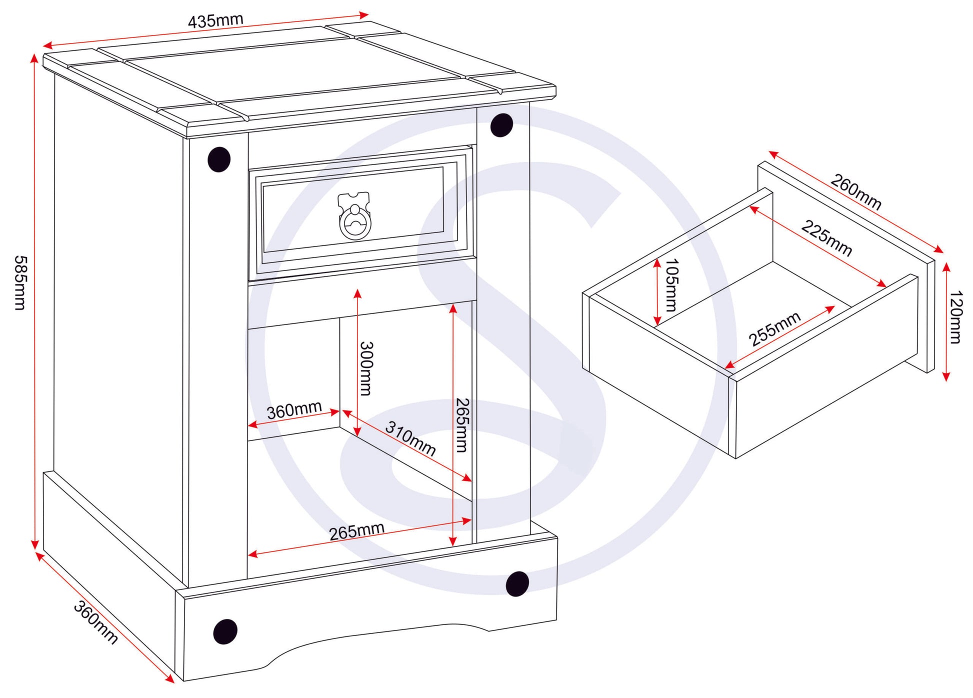 Corona Petite Bedside - Distressed Waxed Pine