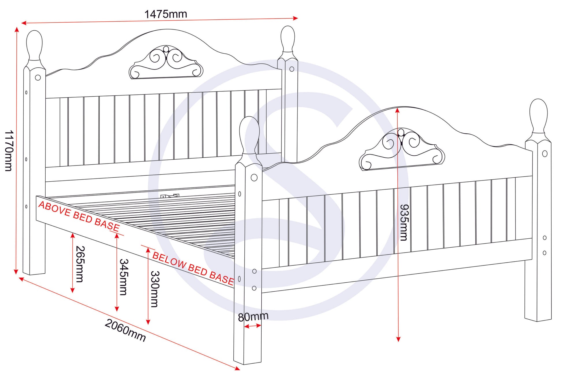 Corona Scroll 4'6" High End Bed - Distressed Waxed Pine