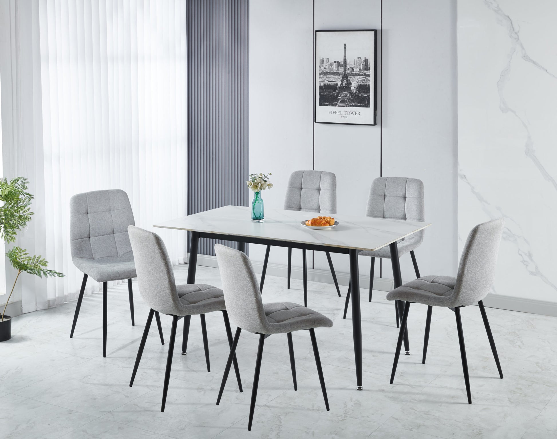 Fenton Dining Set (X6 Chairs) - White/Light Grey Fabric