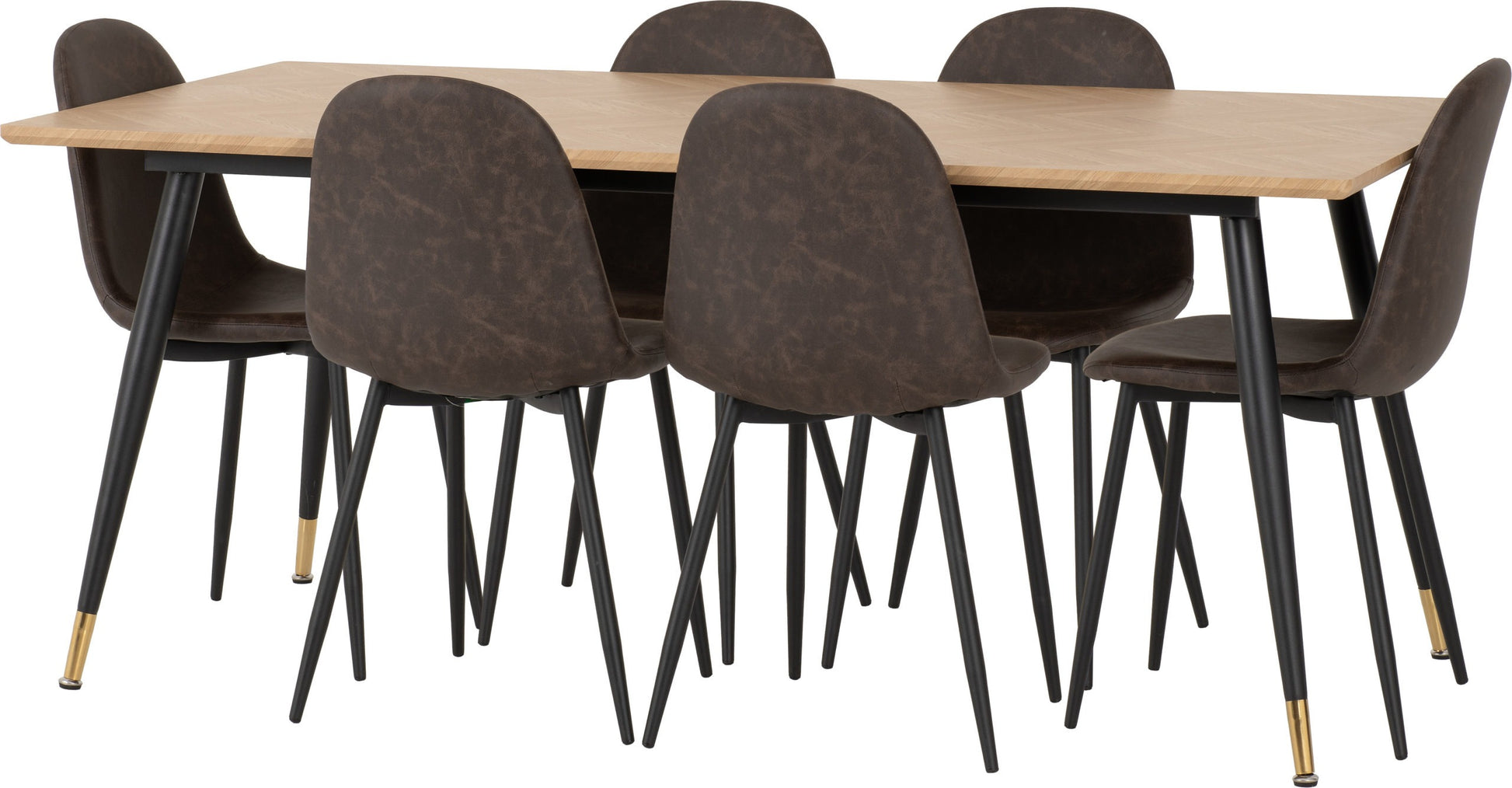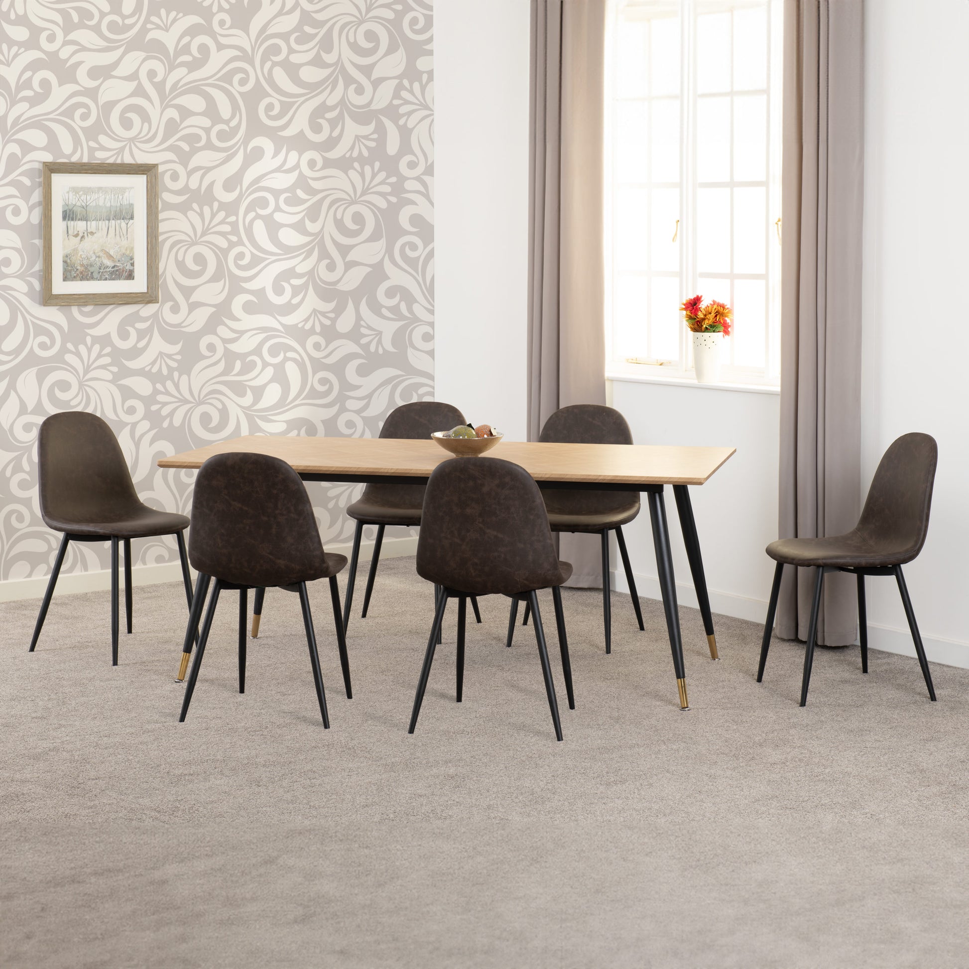 Hamilton & Athens Large Dining Set (X6 Chairs) - Medium Oak Effect/Brown Pu