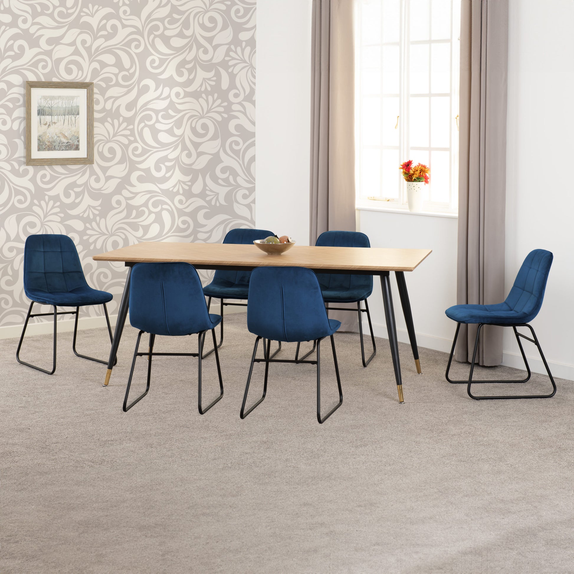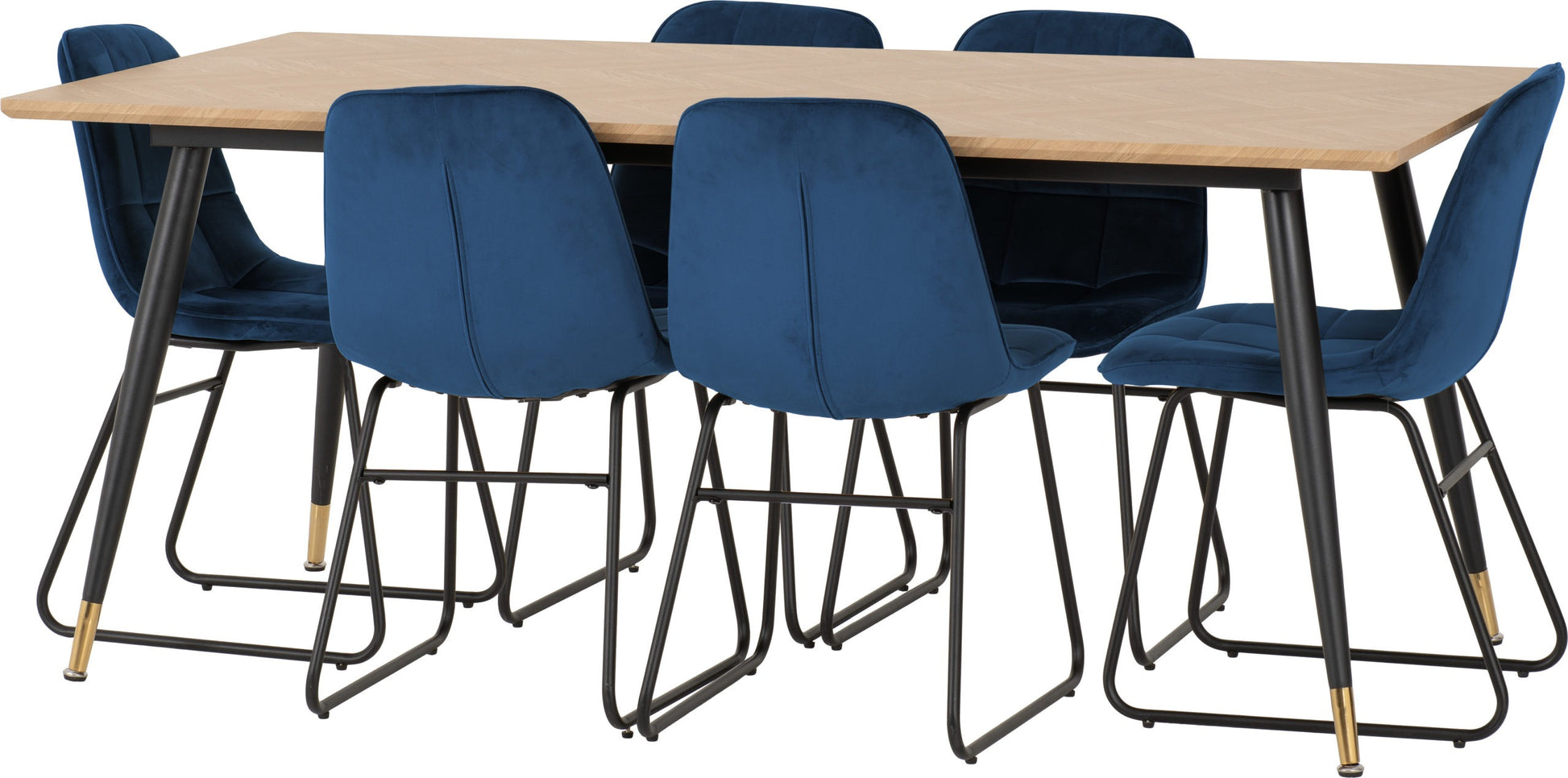Hamilton & Lukas Large Dining Set (X6 Chairs) - Medium Oak Effect/Sapphire Blue Velvet