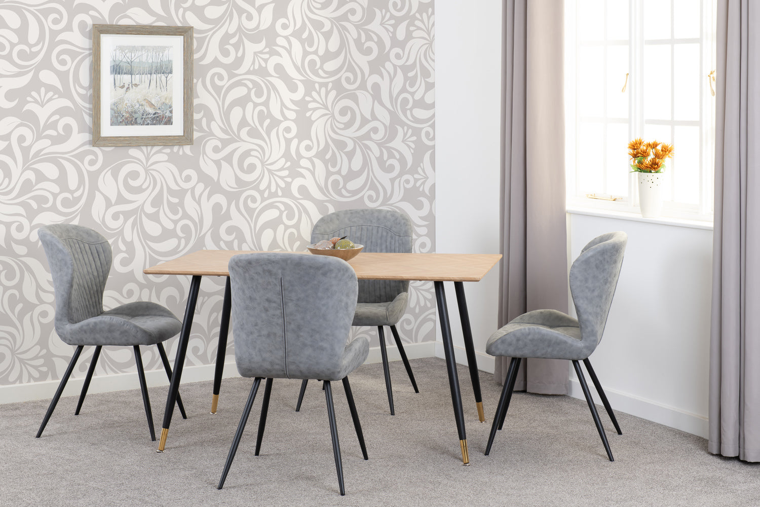 Hamilton & Quebec Medium Dining Set (X4 Chairs) - Medium Oak Effect/Grey Pu