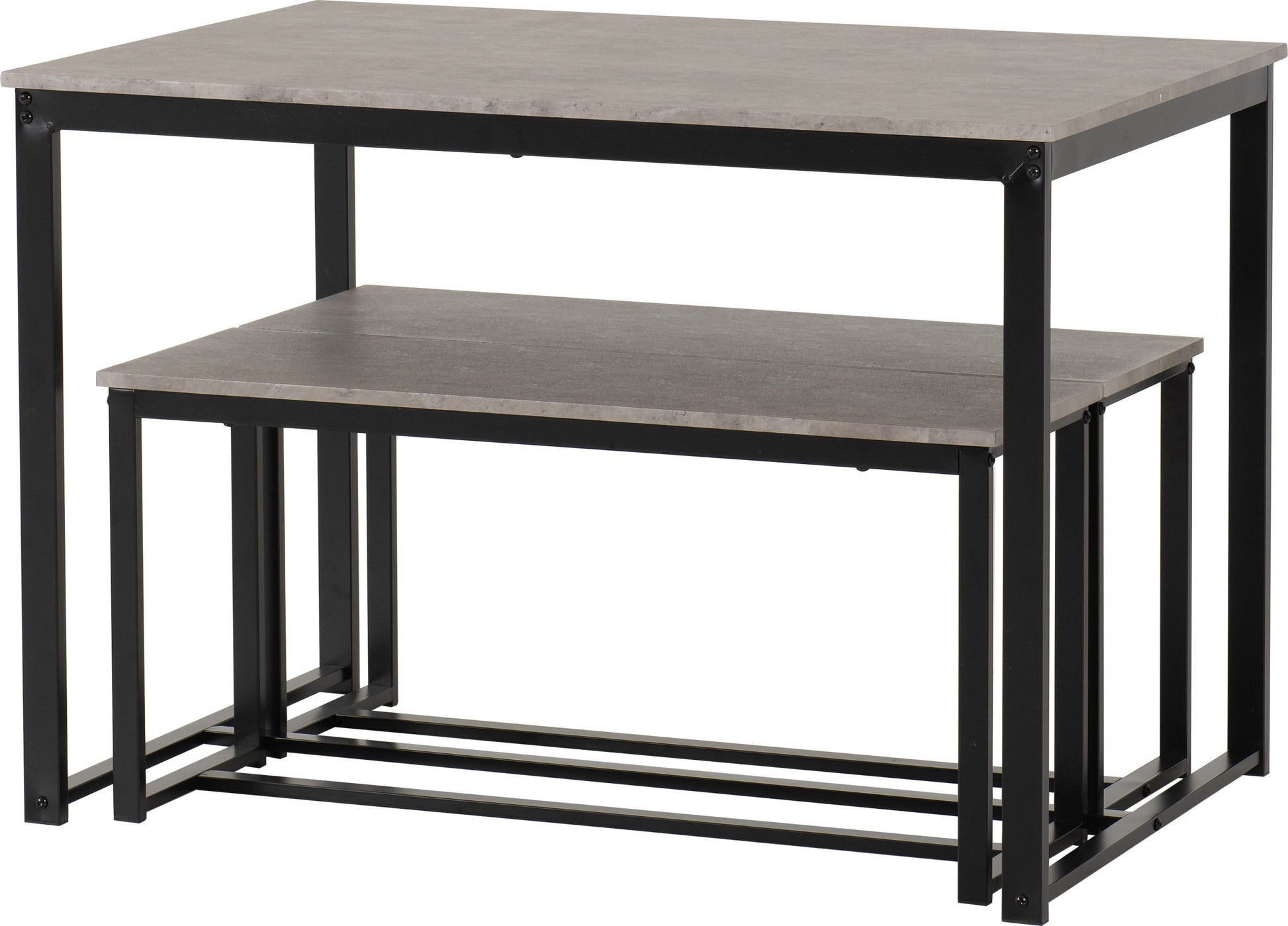 Lincoln 1+2 Dining Bench Set - Stone Effect/Black