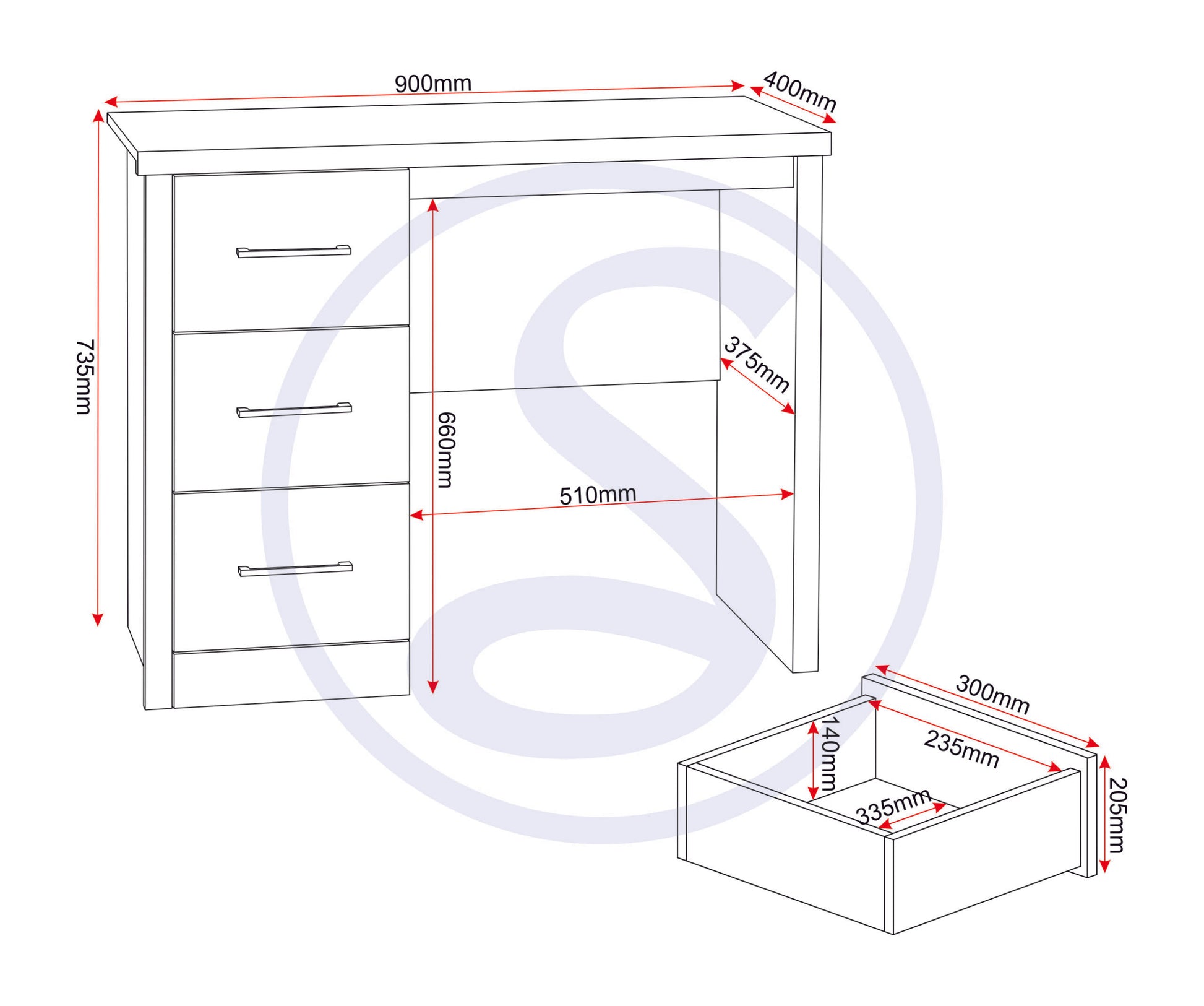Lisbon 3Pc Dressing Table Set (With Mirror) - Black Wood Grain/Black Pu