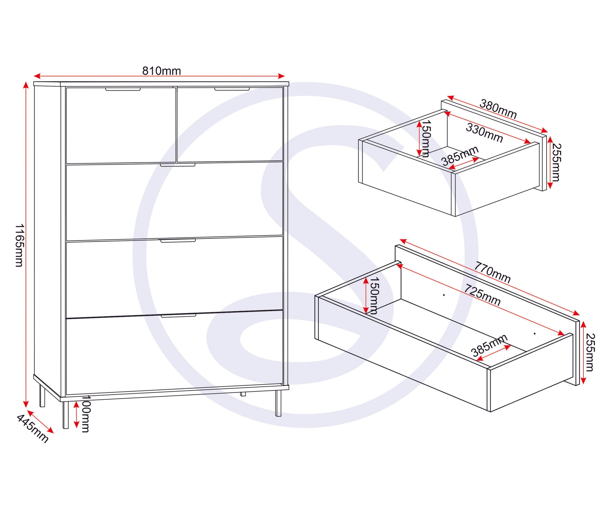 Madrid 3+2 Drawer Chest - Grey/White Gloss