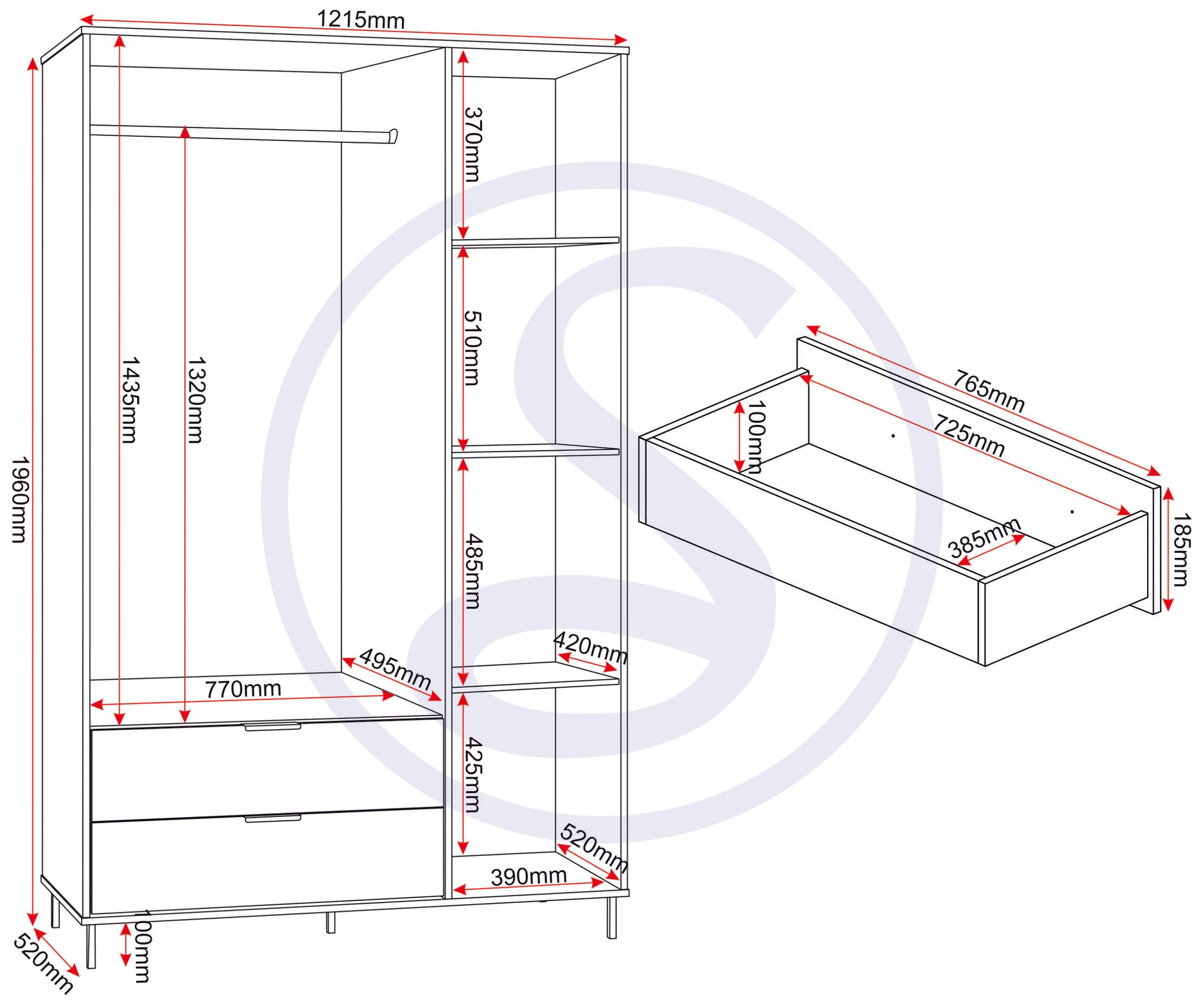 Assembled Sizes W x D x H (MM)
