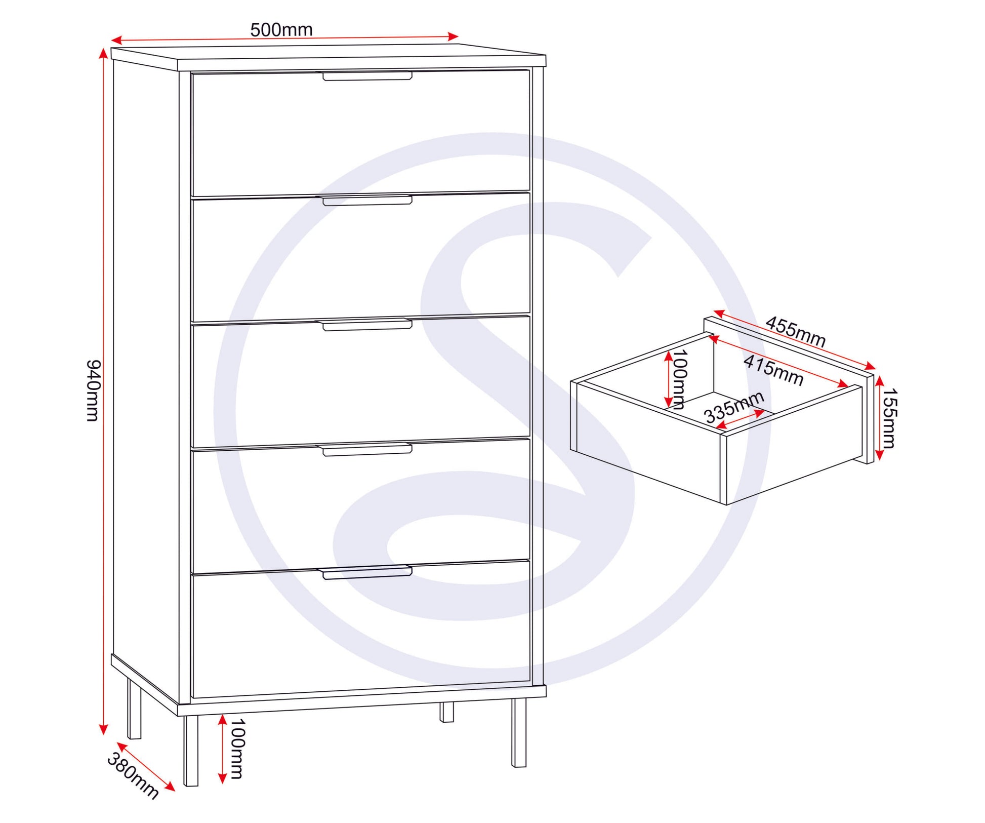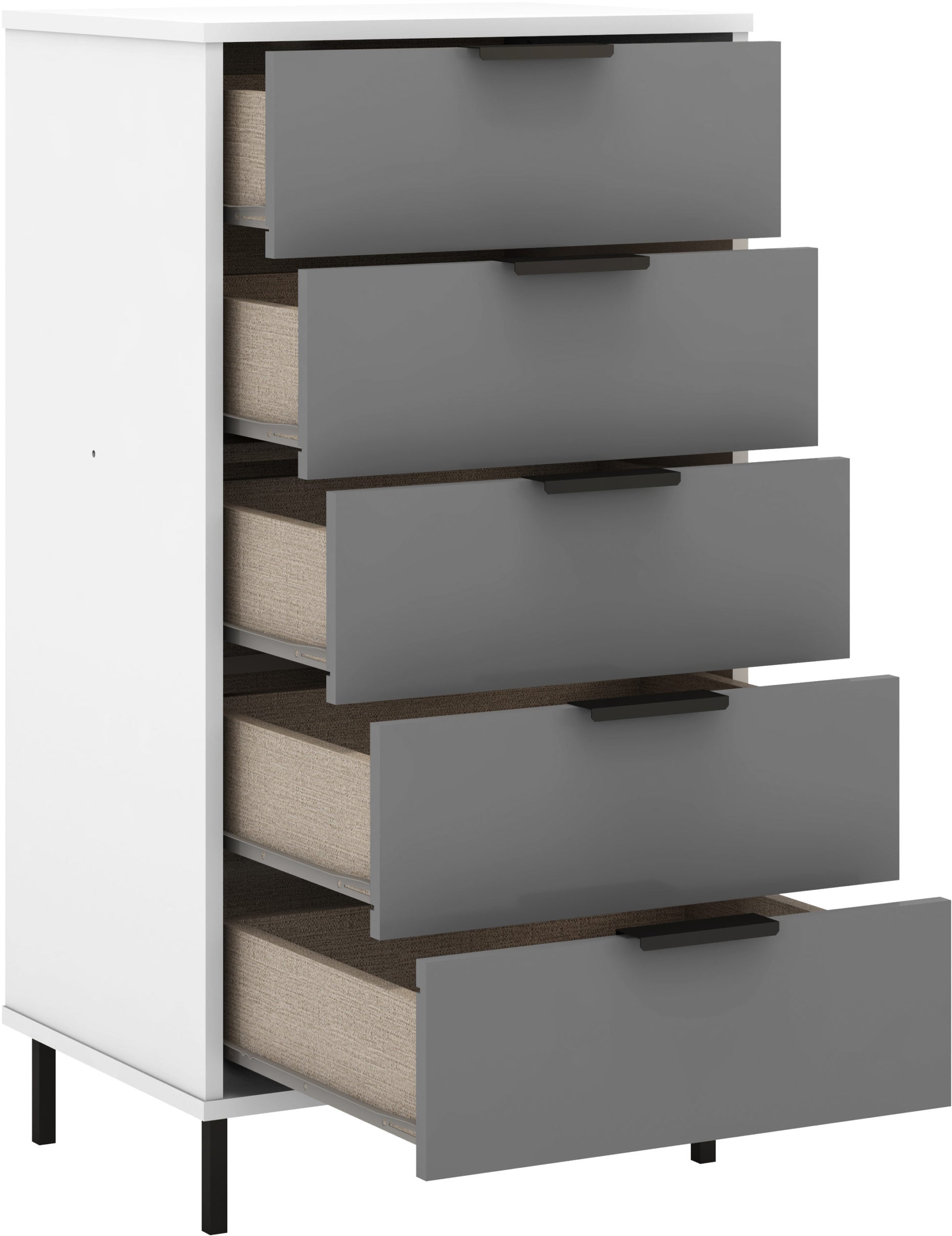 Madrid 5 Drawer Narrow Chest - Grey/White Gloss