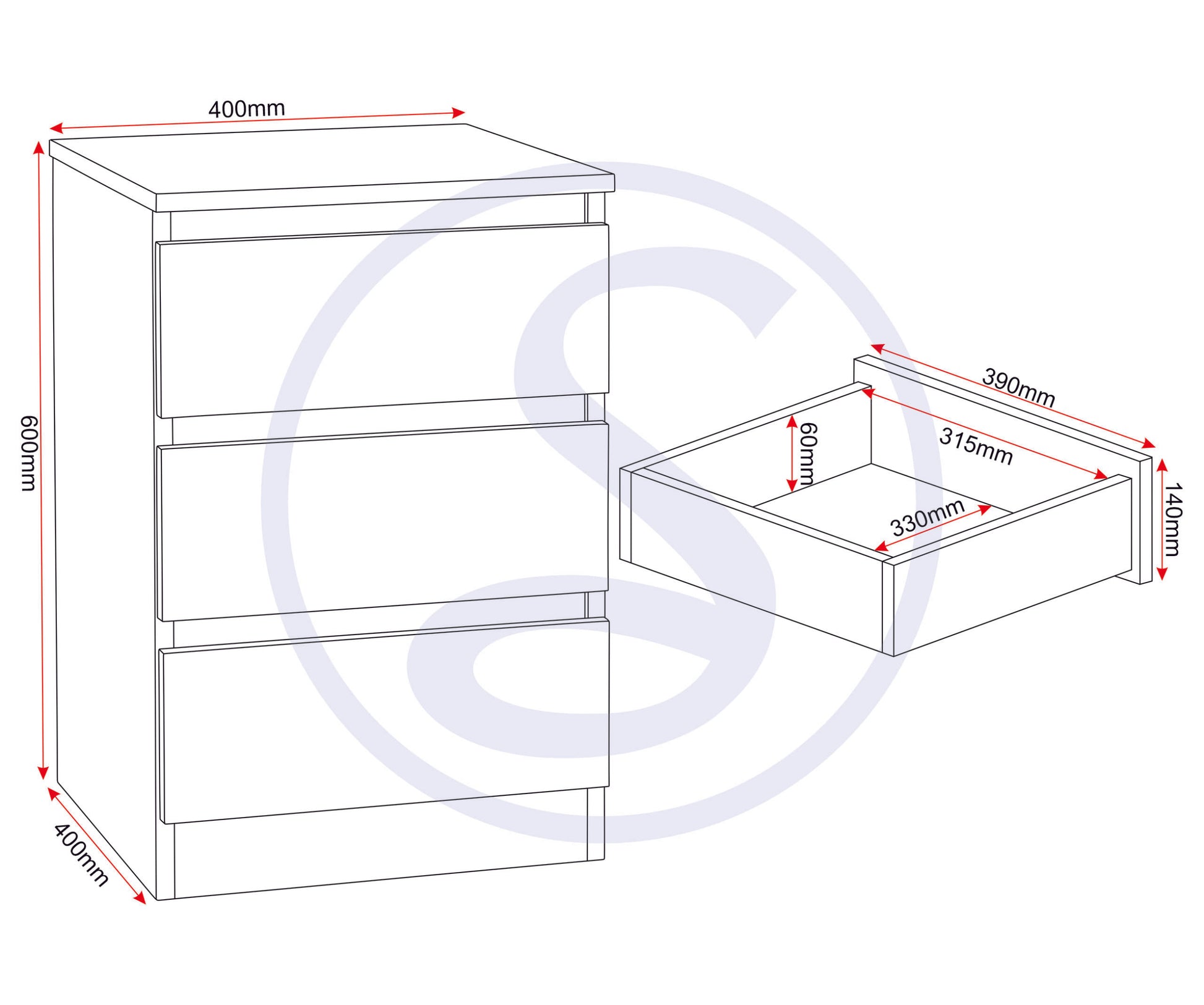 Malvern 3 Drawer Bedside X2 - Urban Snow