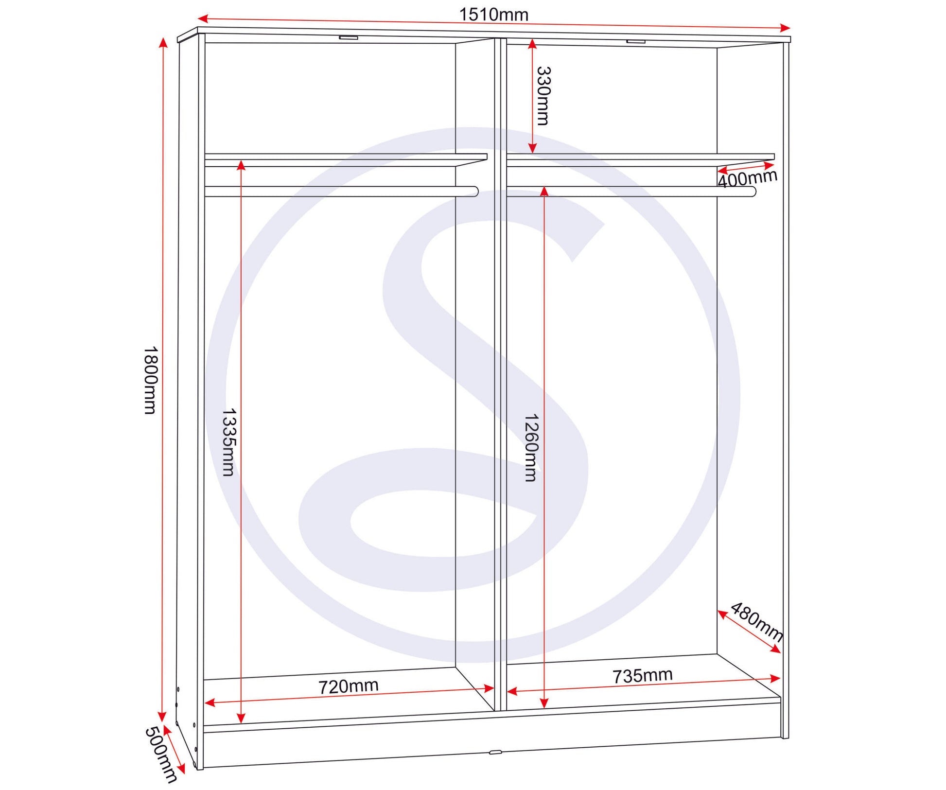 Assembled Sizes W x D x H (MM)