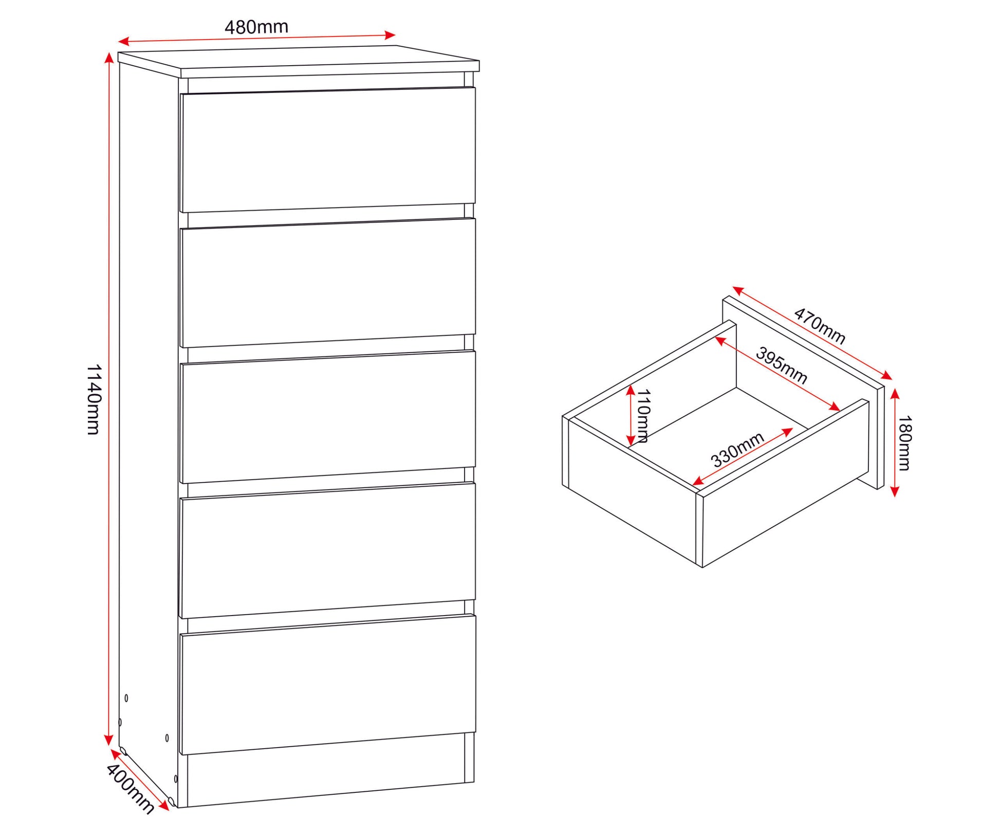 Malvern 5 Drawer Narrow Chest - Urban Snow