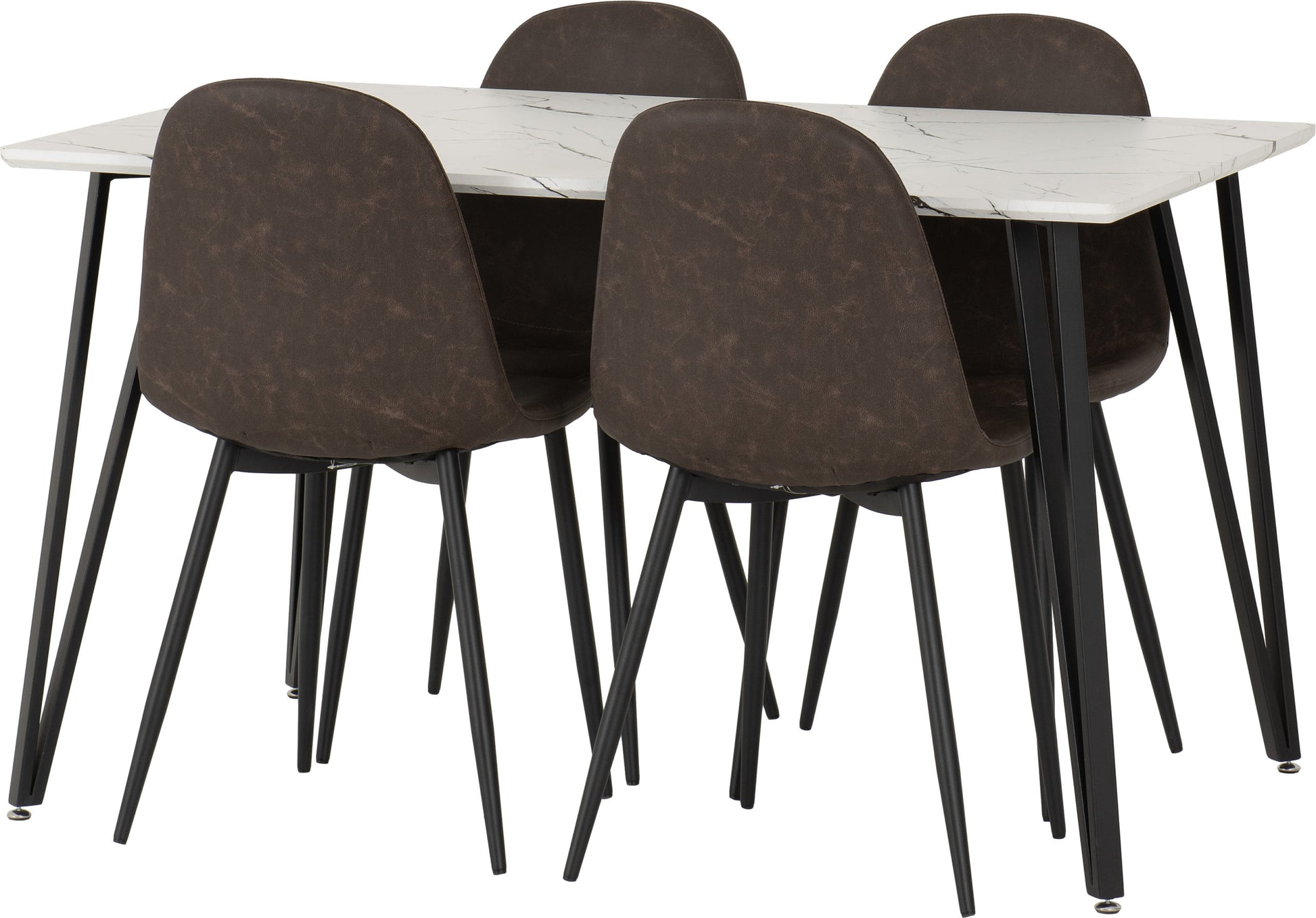Marlow & Athens Dining Set (X4 Chairs) - White Marble/Brown Pu