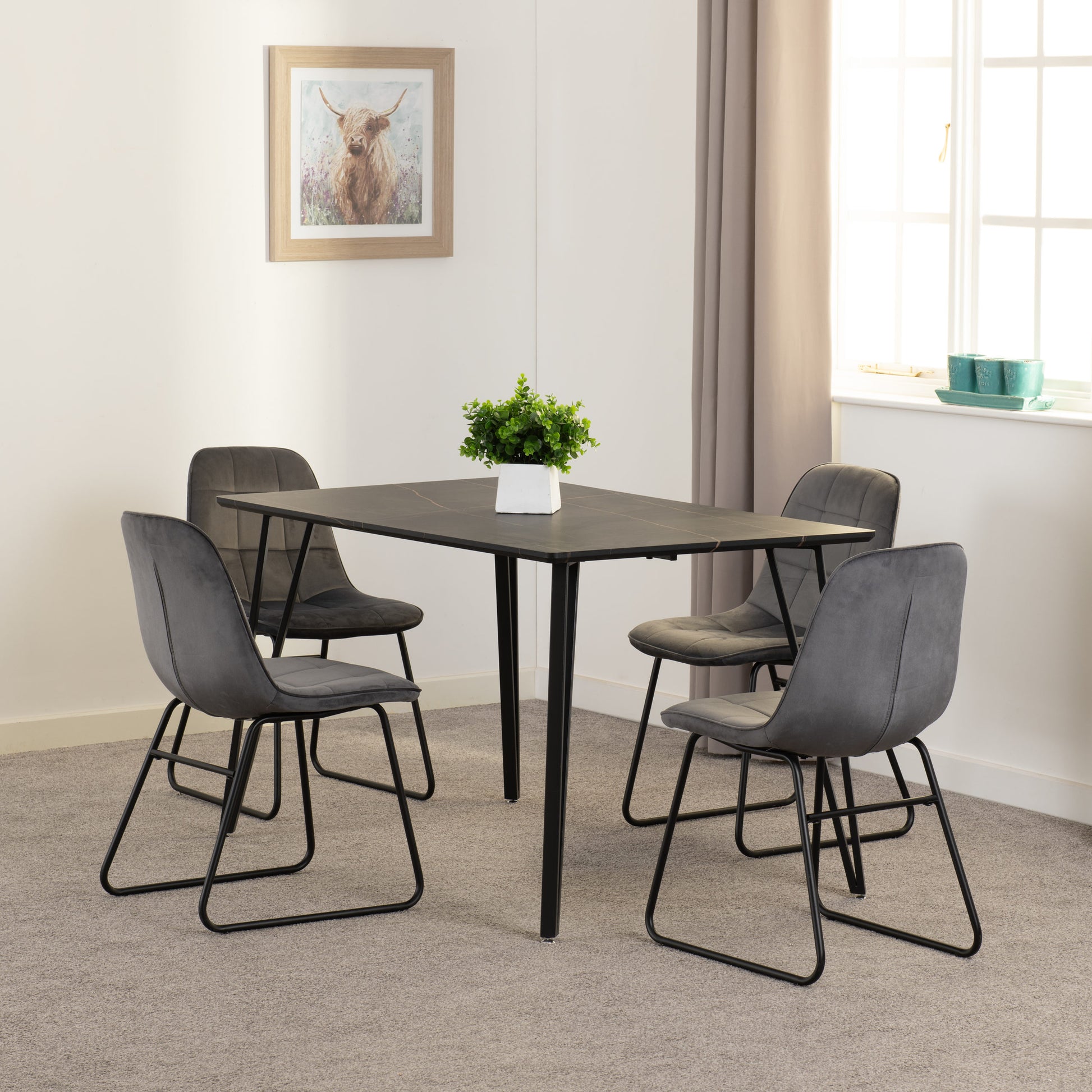 Marlow & Lukas Dining Set (X4 Chairs) - Black Marble/Grey Velvet