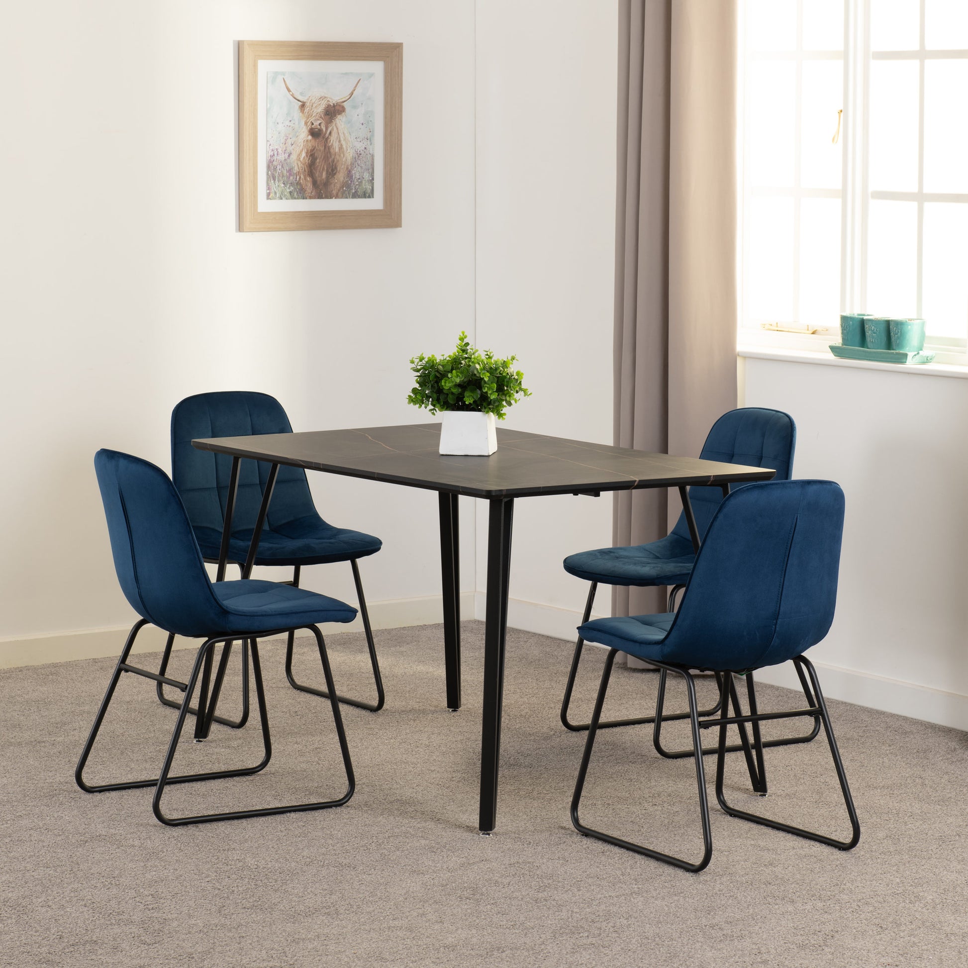 Marlow & Lukas Dining Set (X4 Chairs) - Black Marble/Sapphire Blue Velvet