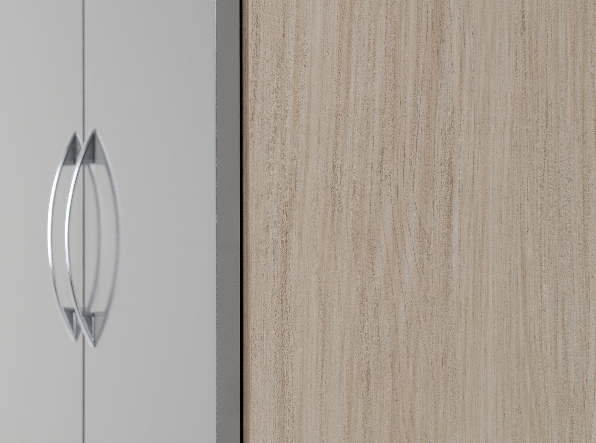 Nevada 2 Door 1 Drawer Wardrobe - Grey Gloss/Light Oak Effect Veneer