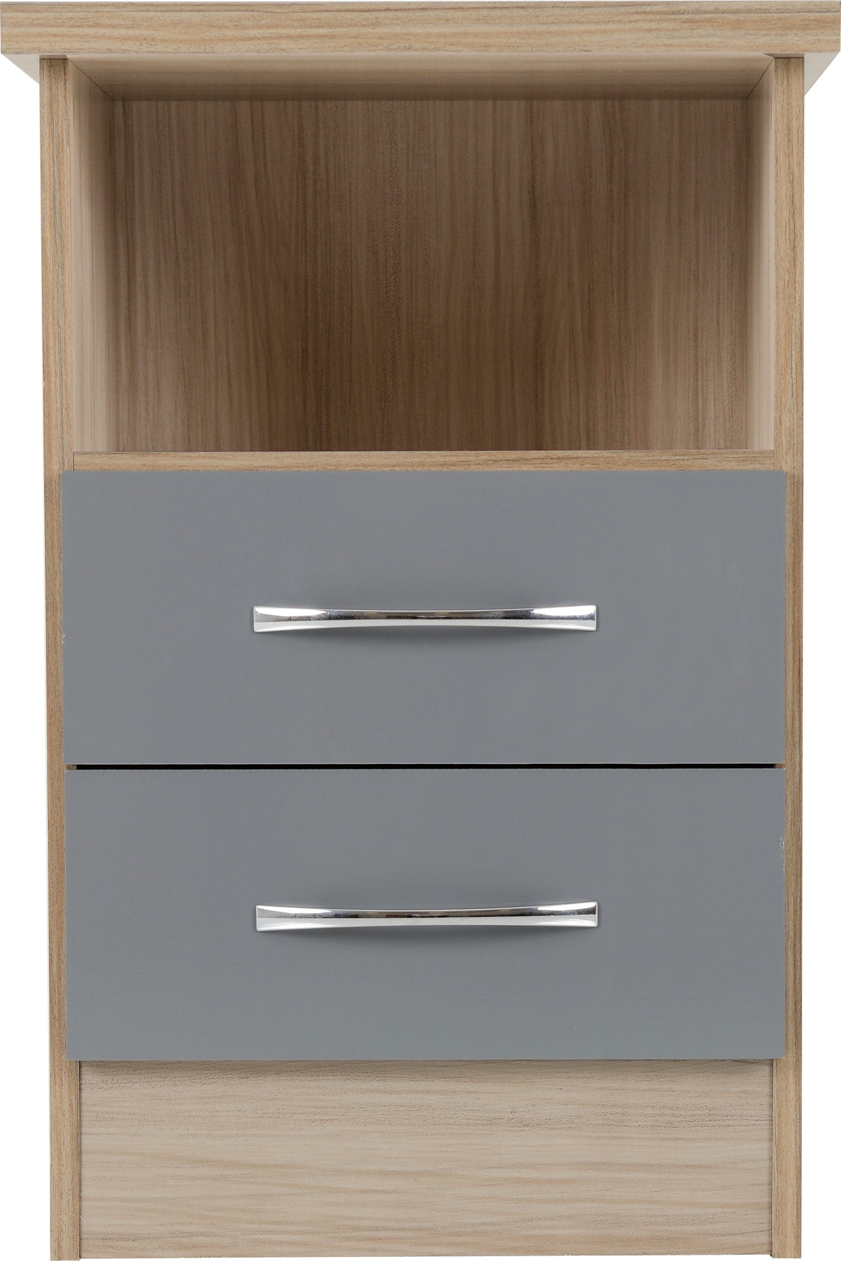 Nevada 2 Drawer Bedside - Grey Gloss/Light Oak Effect Veneer