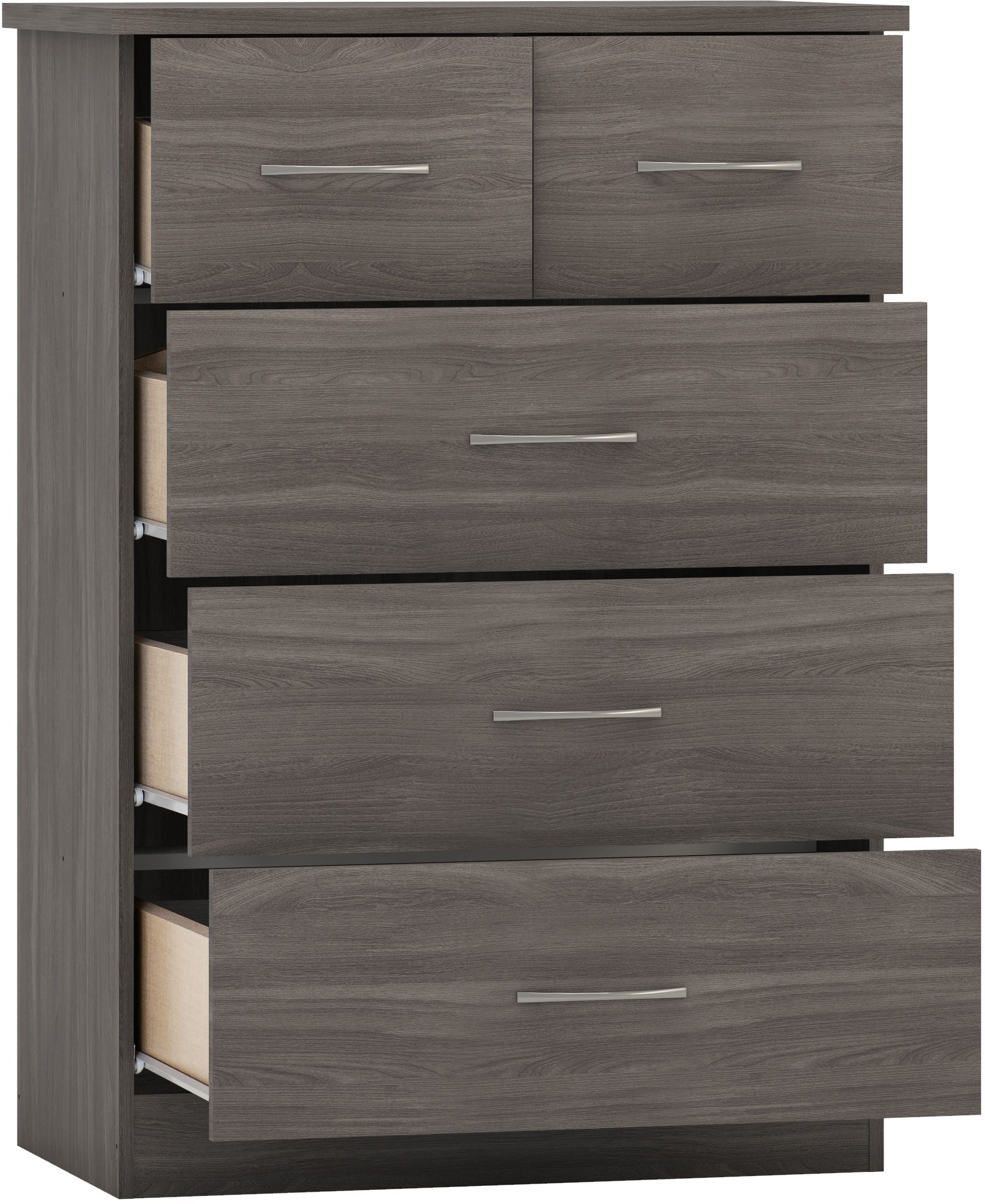 Nevada 3+2 Drawer Chest - Black Wood Grain