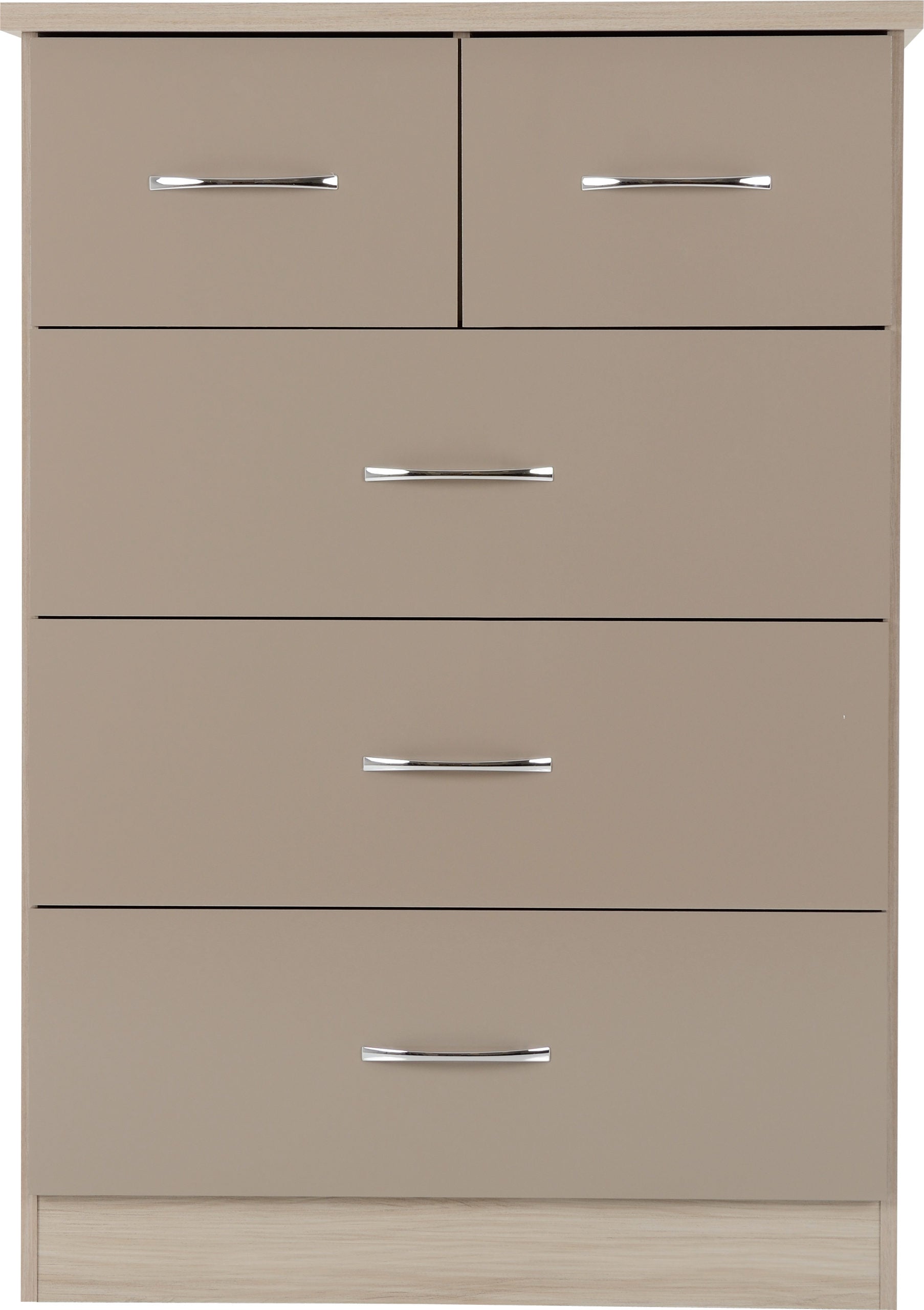 Nevada 3+2 Drawer Chest - Oyster Gloss/Light Oak Effect Veneer
