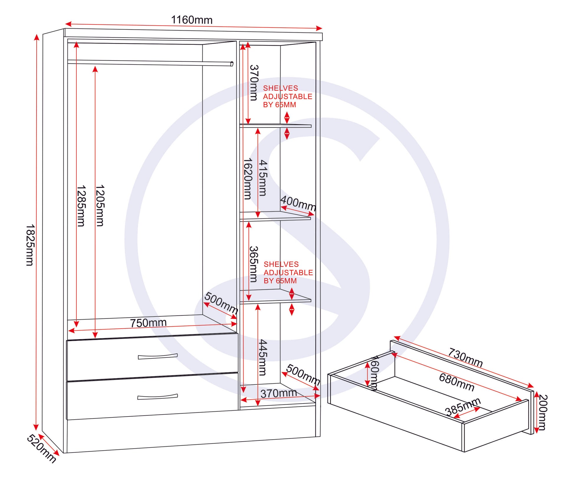 Assembled Sizes W x D x H (MM)