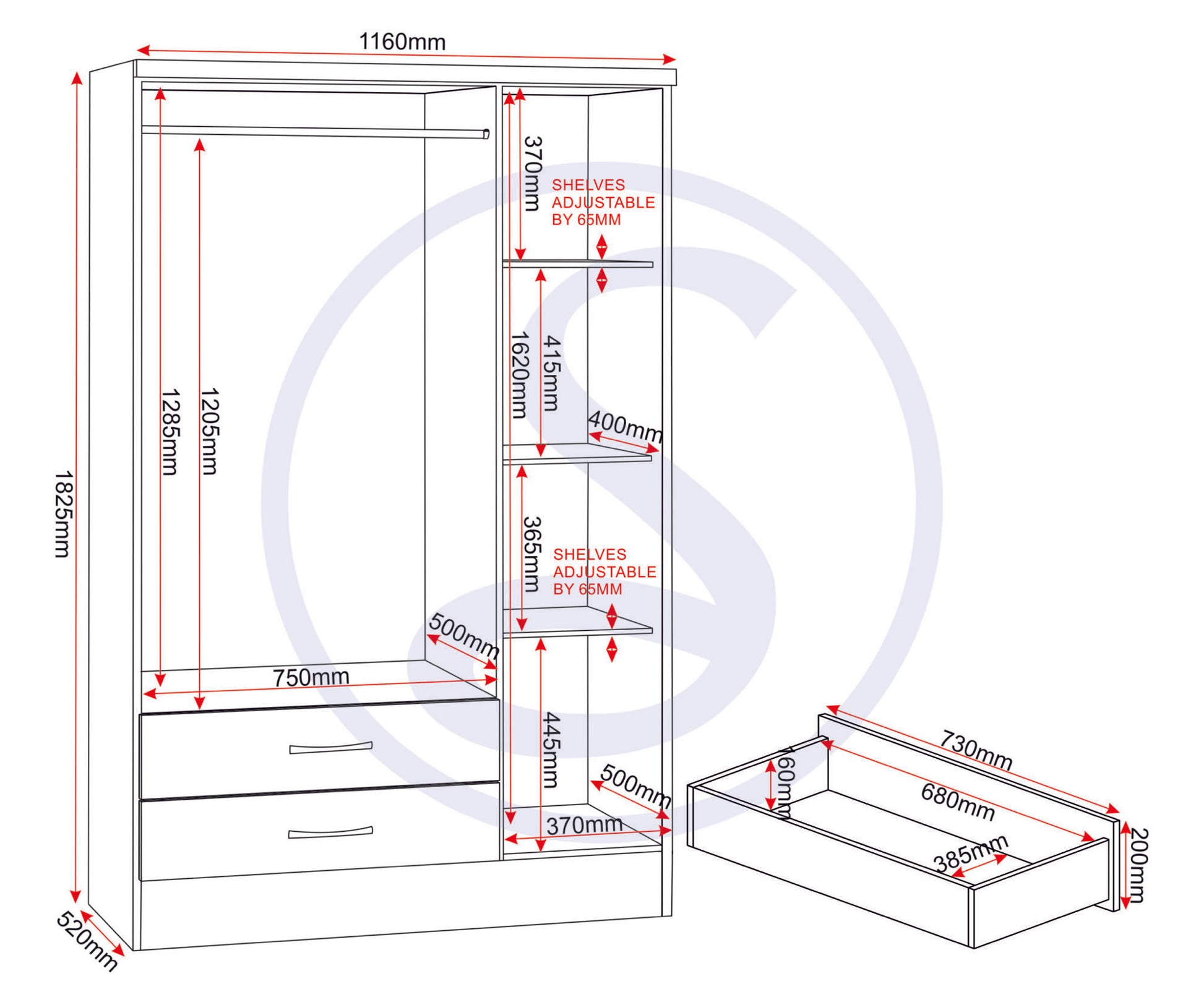 Nevada 3 Door 2 Drawer Wardrobe - Oyster Gloss/Light Oak Effect Veneer