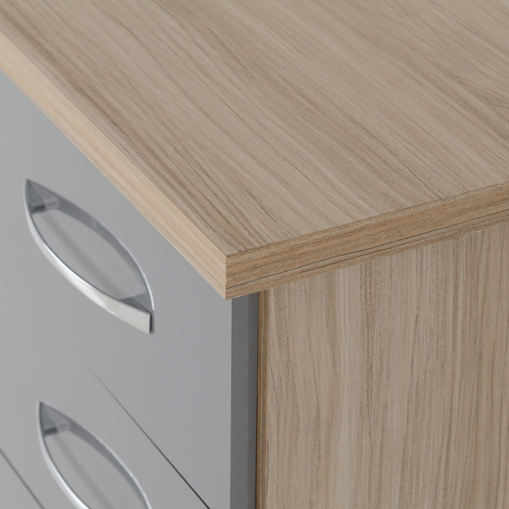 Nevada 3 Drawer Bedside - Grey Gloss/Light Oak Effect Veneer