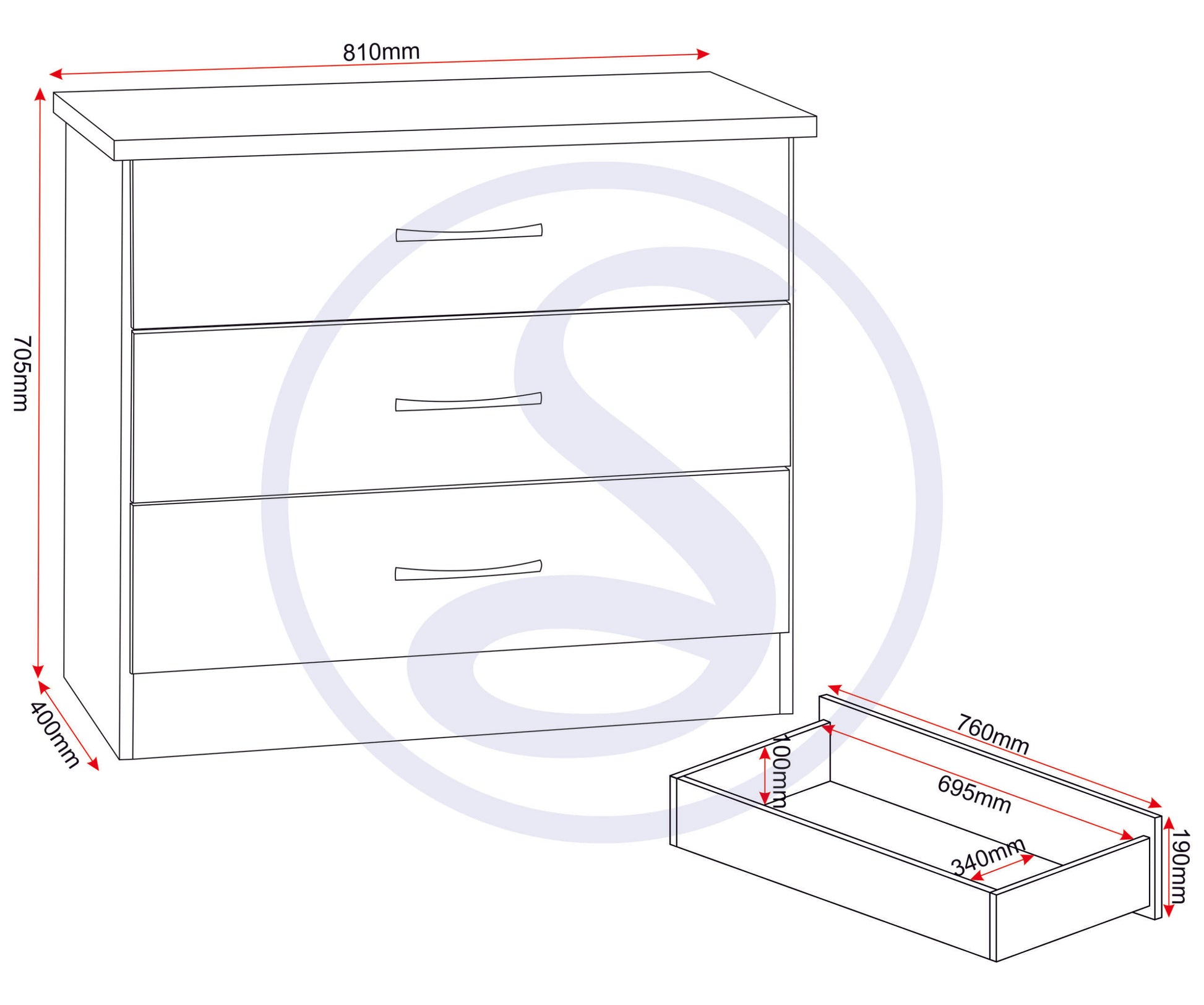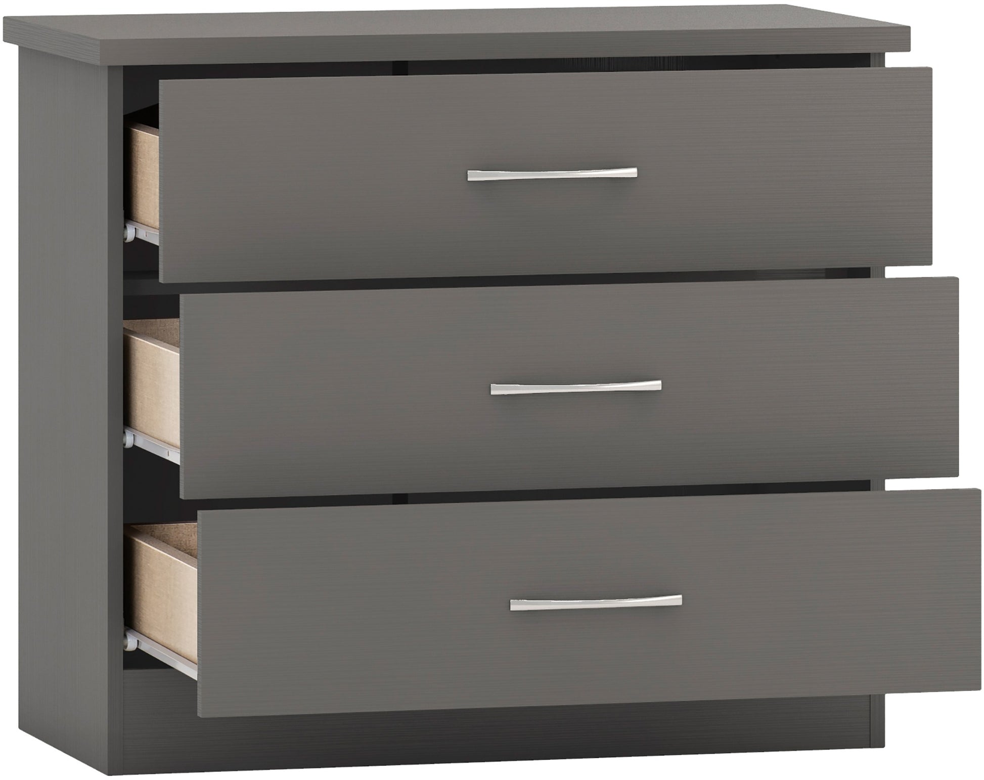Nevada 3 Drawer Chest - 3D Effect Grey