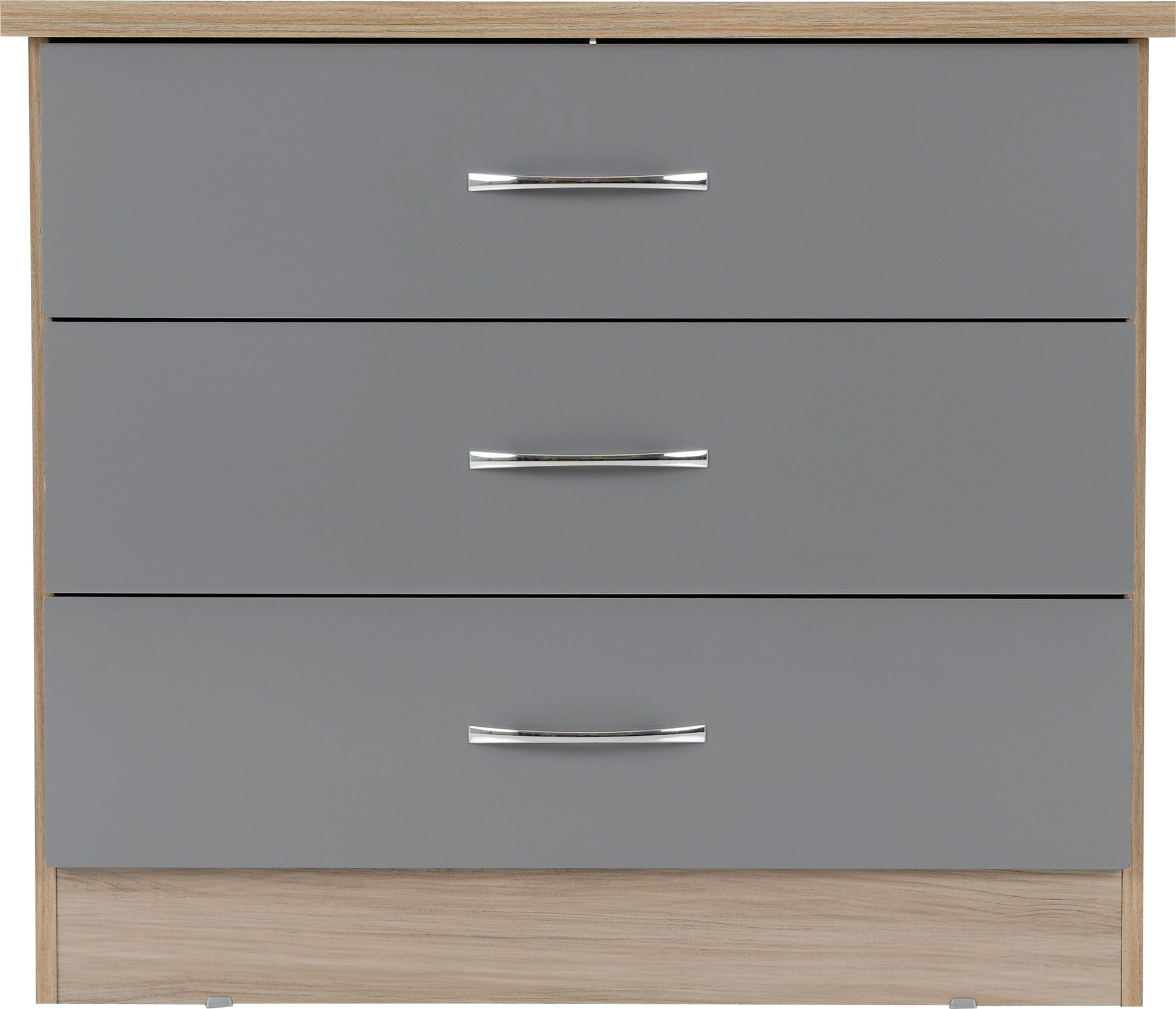 Nevada 3 Drawer Chest - Grey Gloss/Light Oak Effect Veneer