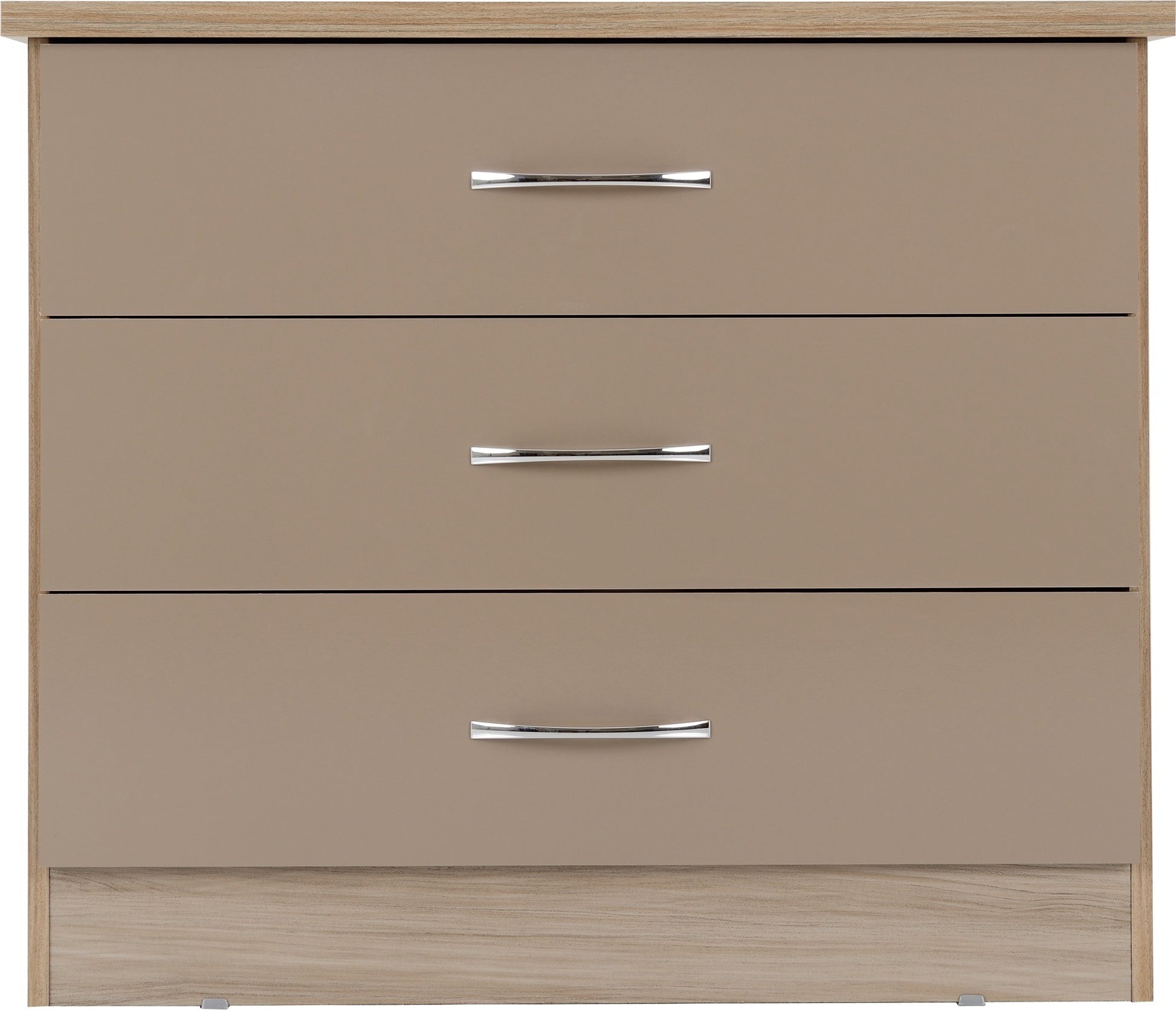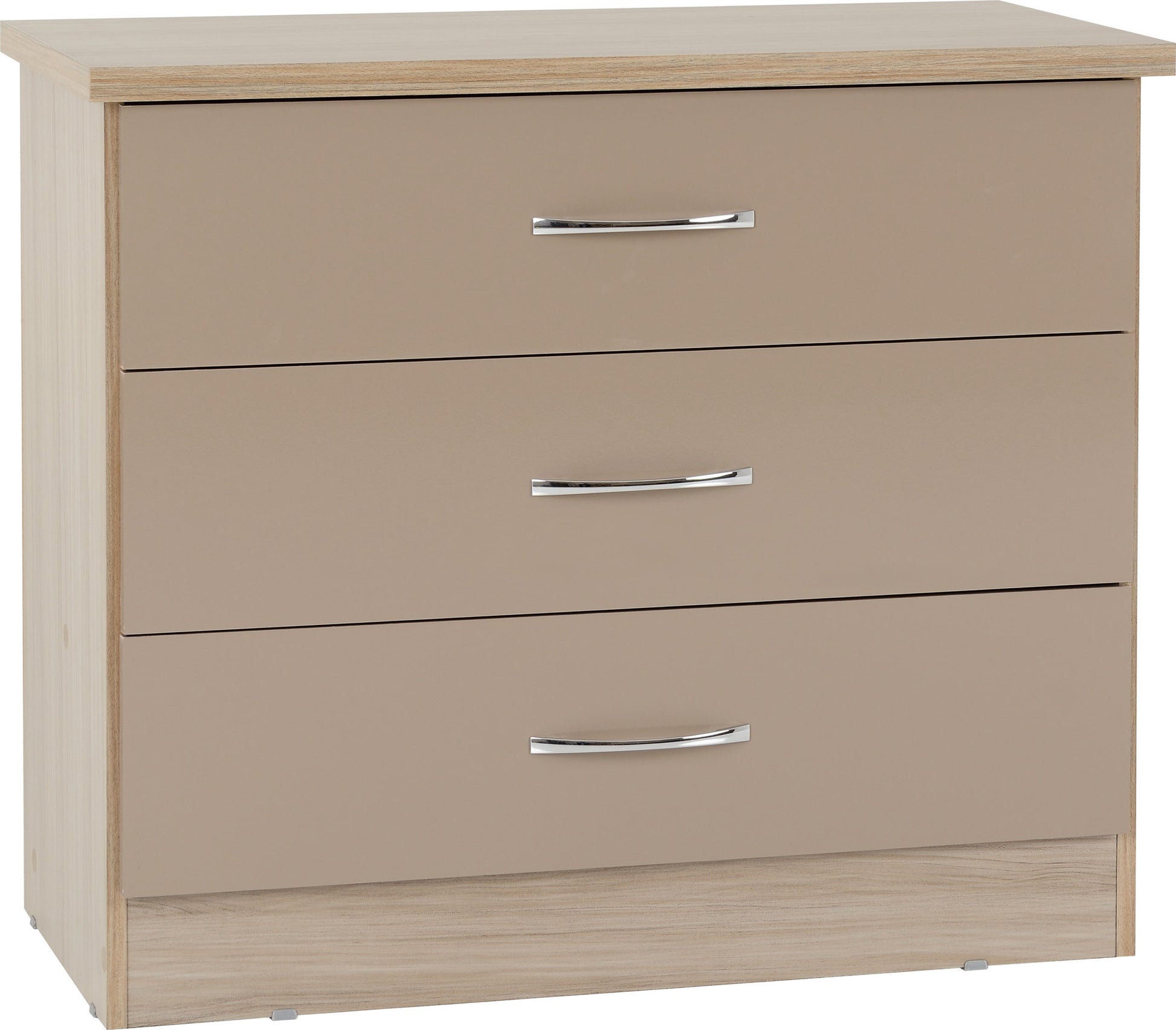 Nevada 3 Drawer Chest - Oyster Gloss/Light Oak Effect Veneer