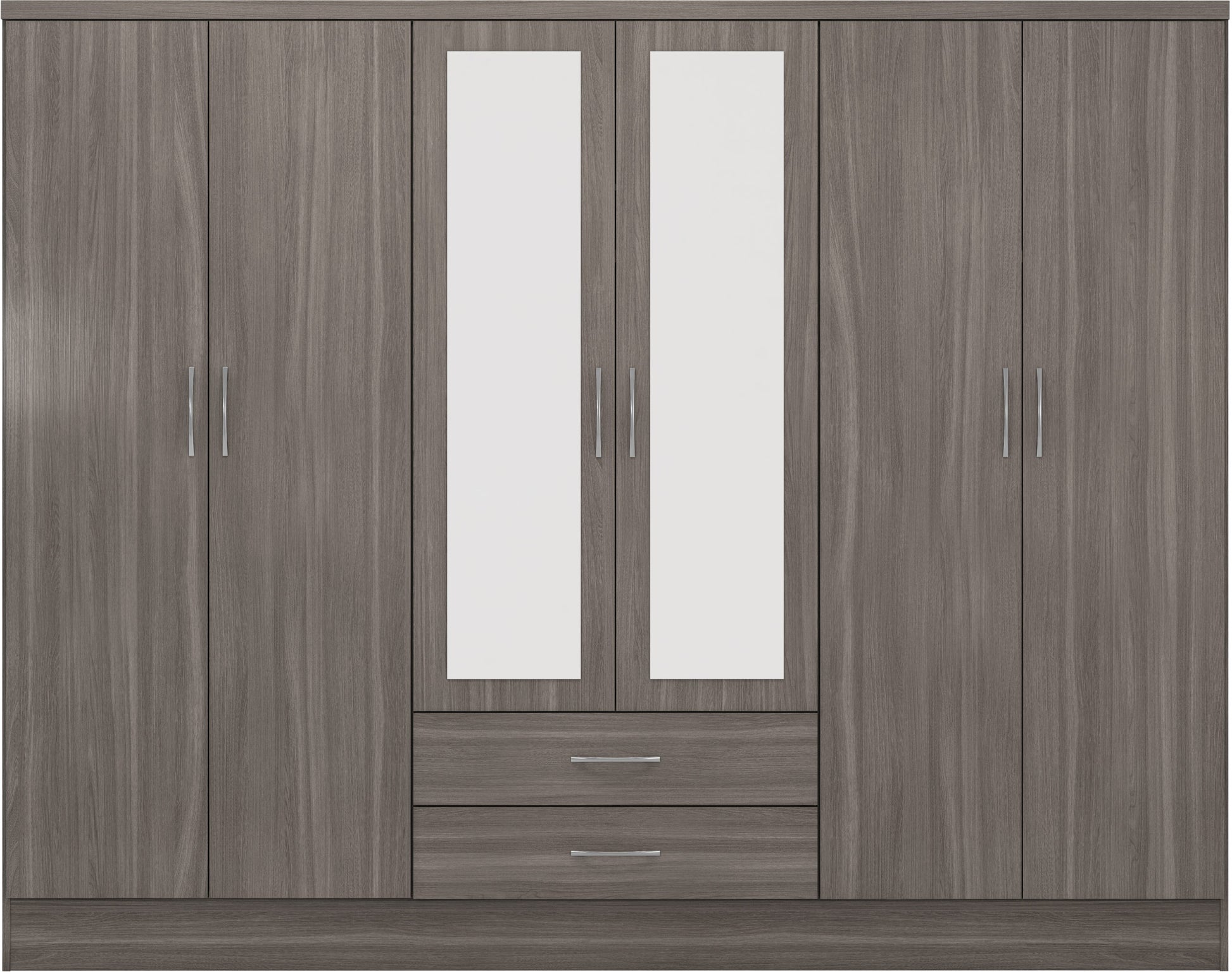 Nevada 6 Door 2 Drawer Wardrobe - Black Wood Grain