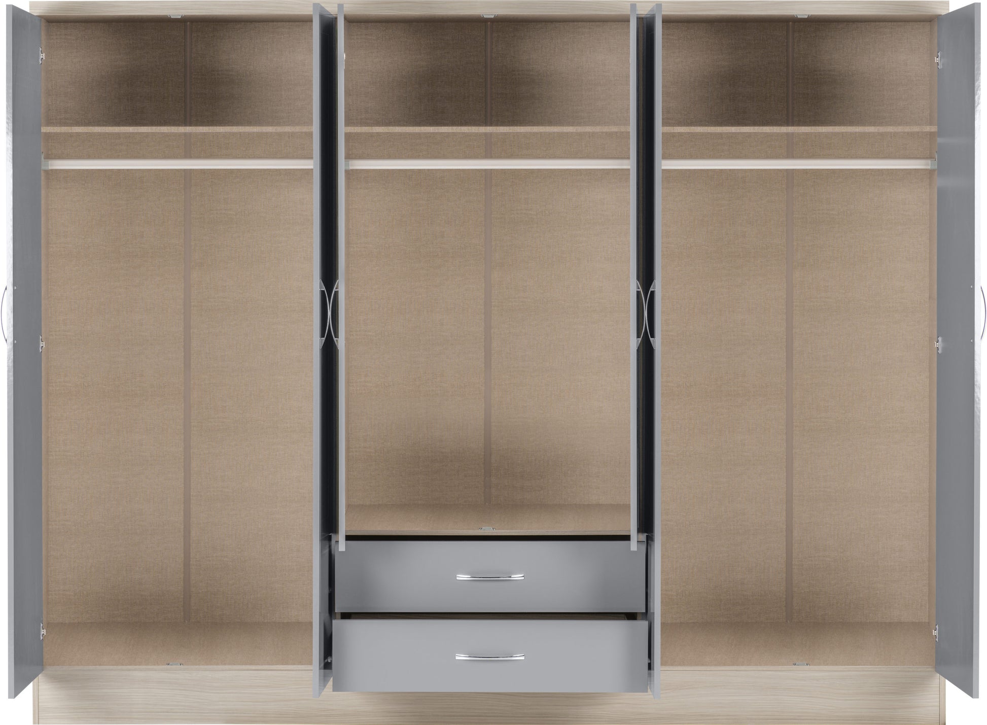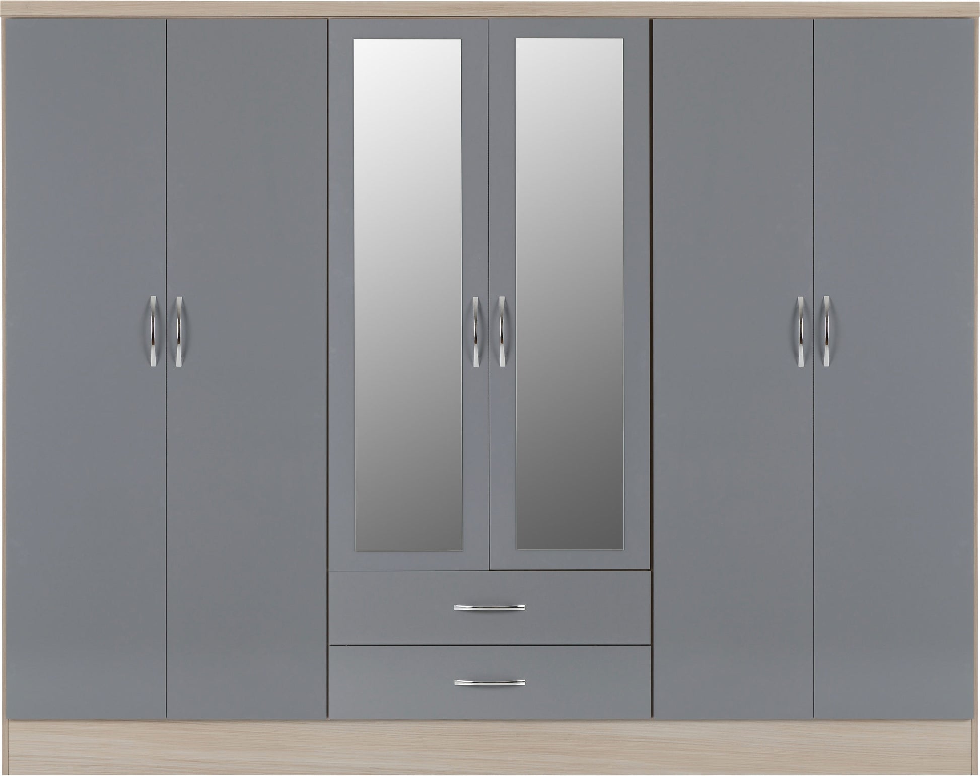 Nevada 6 Door 2 Drawer Wardrobe - Grey Gloss/Light Oak Effect Veneer