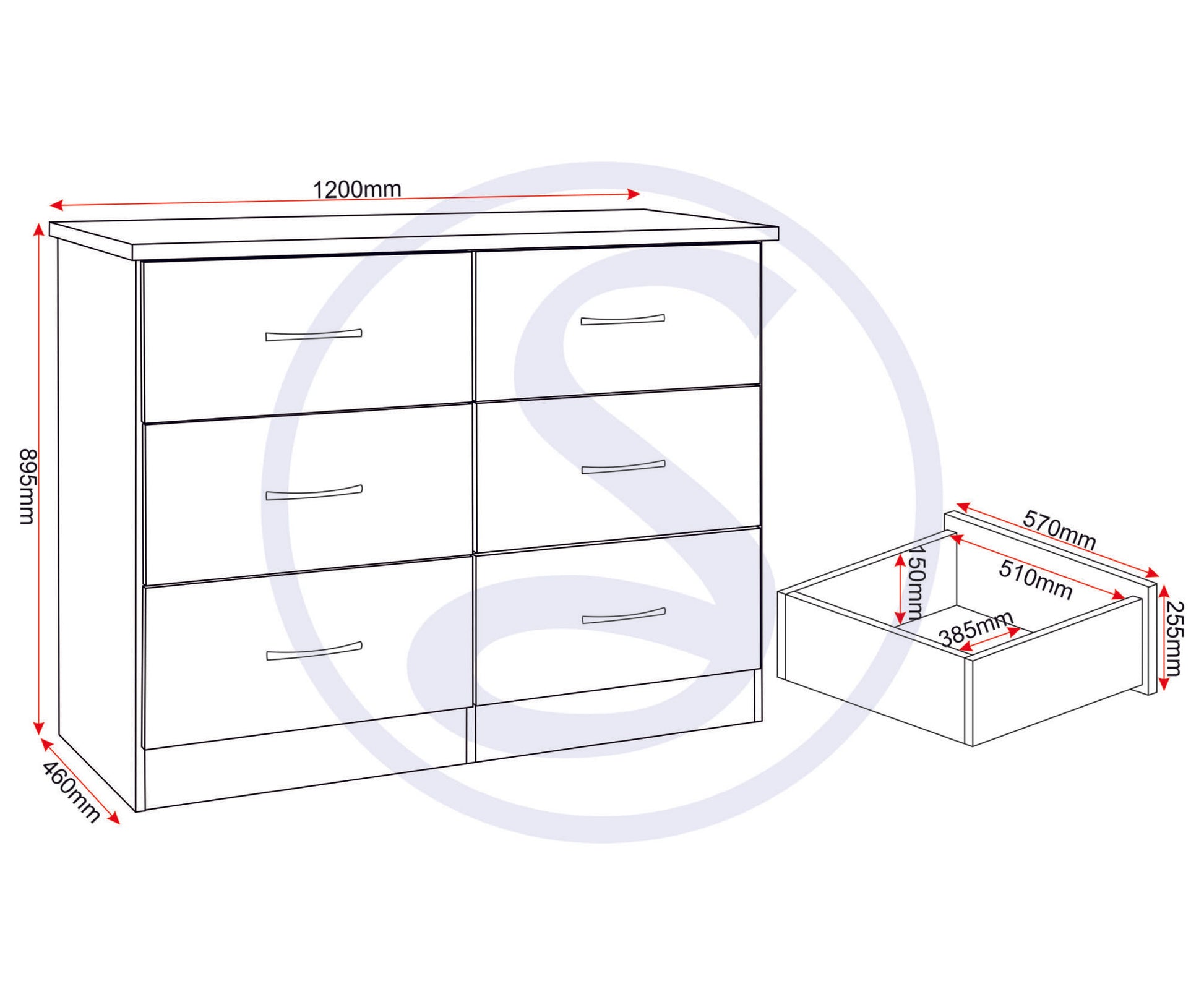Nevada 6 Drawer Chest - Grey Gloss/Light Oak Effect Veneer