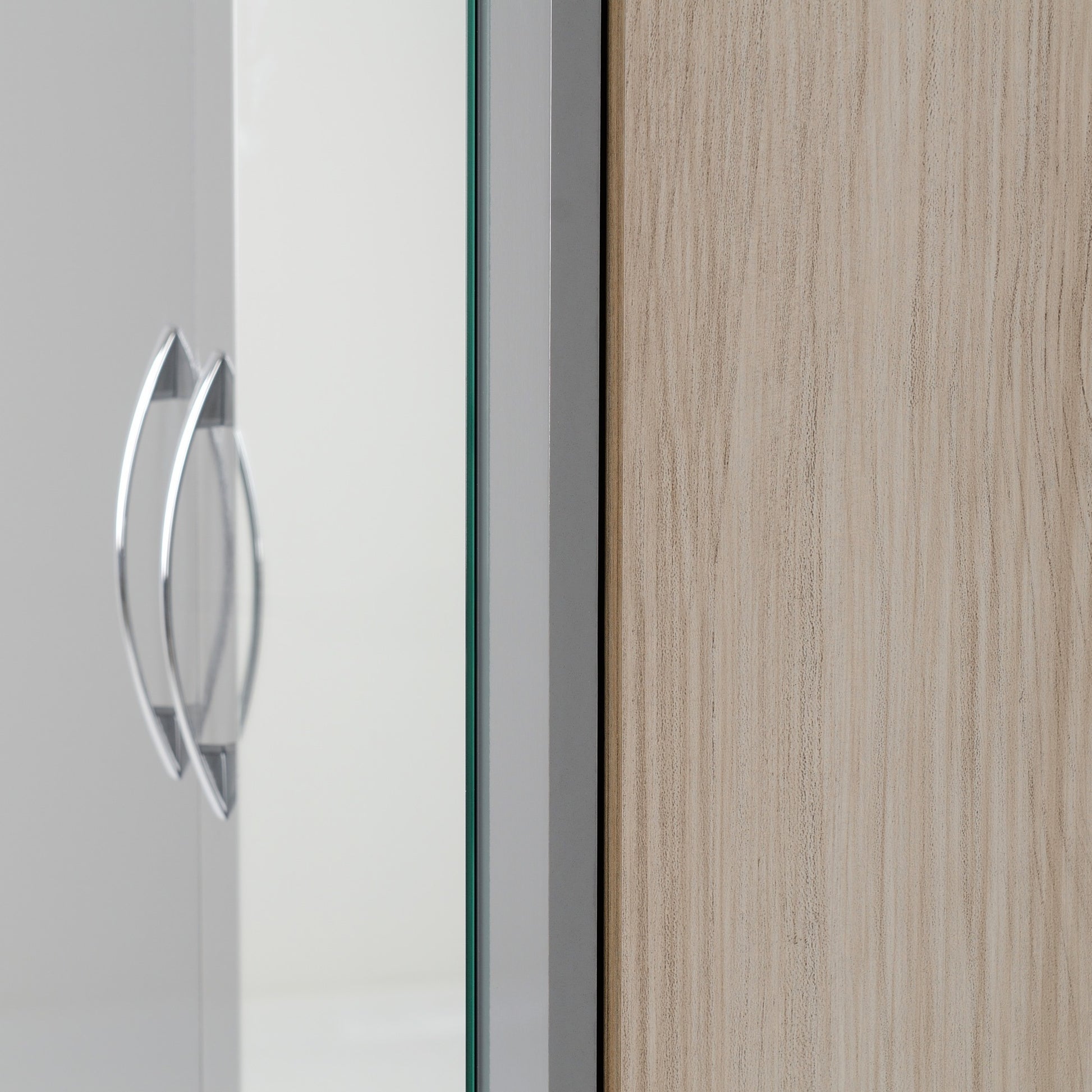 Nevada Mirrored 2 Door Wardrobe - Grey Gloss/Light Oak Effect Veneer