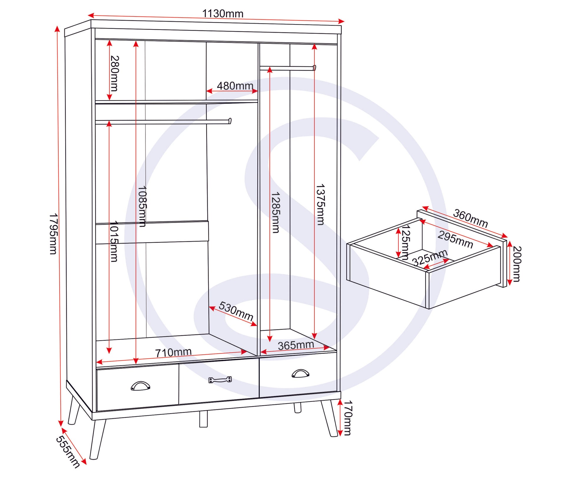 Nordic 3 Door 3 Drawer Wardrobe - Grey/Charcoal Concrete Effect