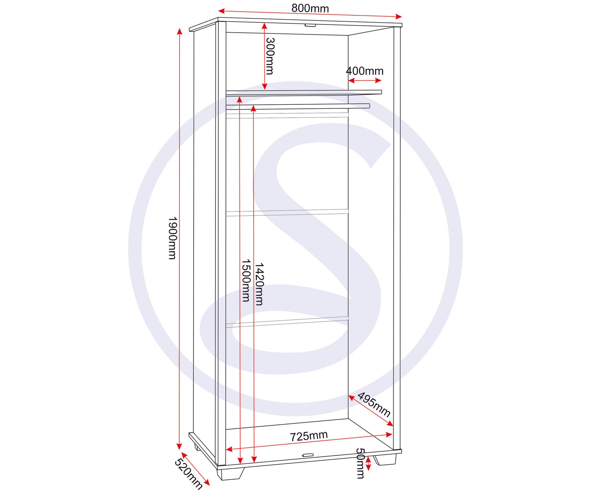 Assembled Sizes W x D x H (MM)