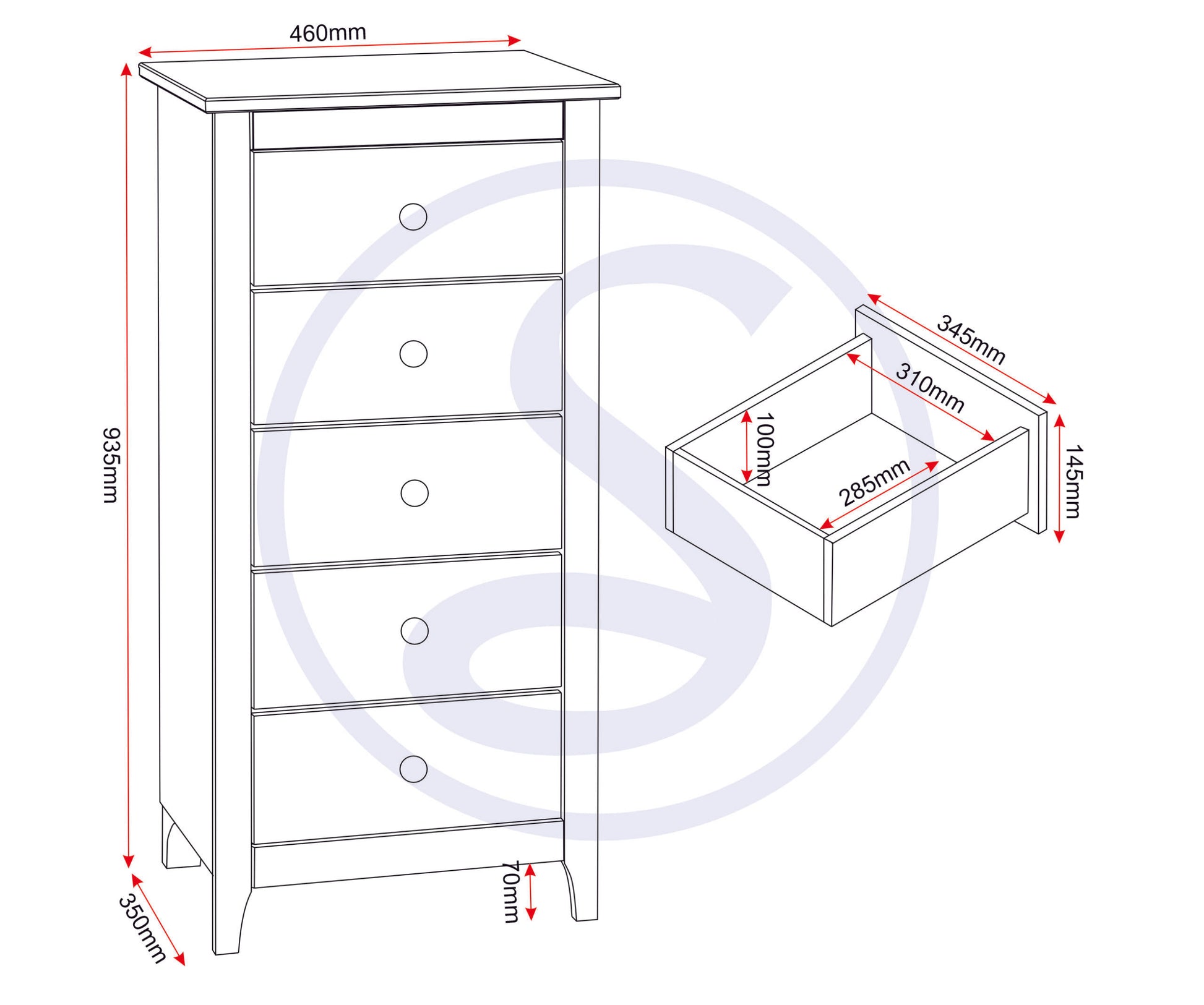Oslo 5 Drawer Narrow Chest - Antique Pine
