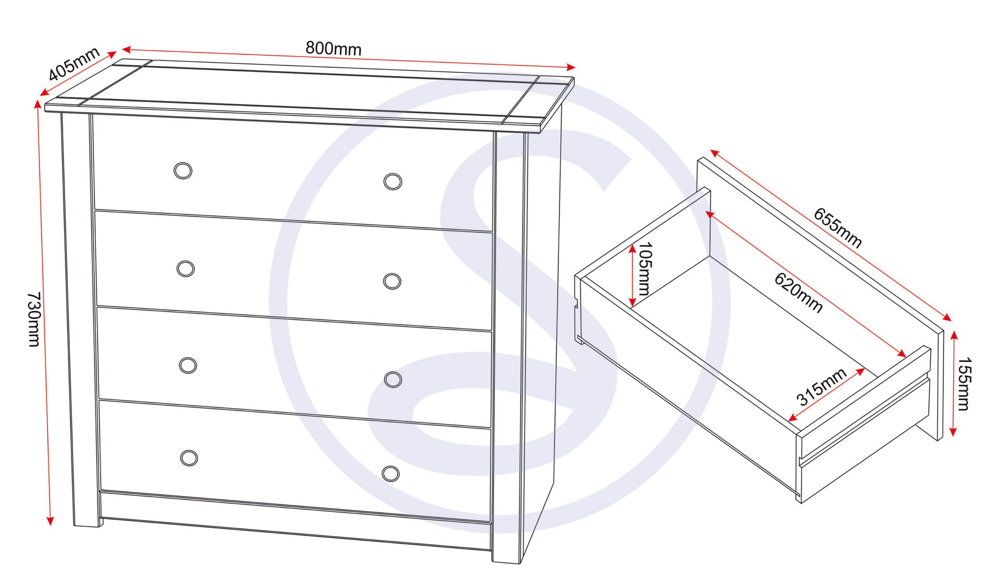 Assembled Sizes W x D x H (MM)