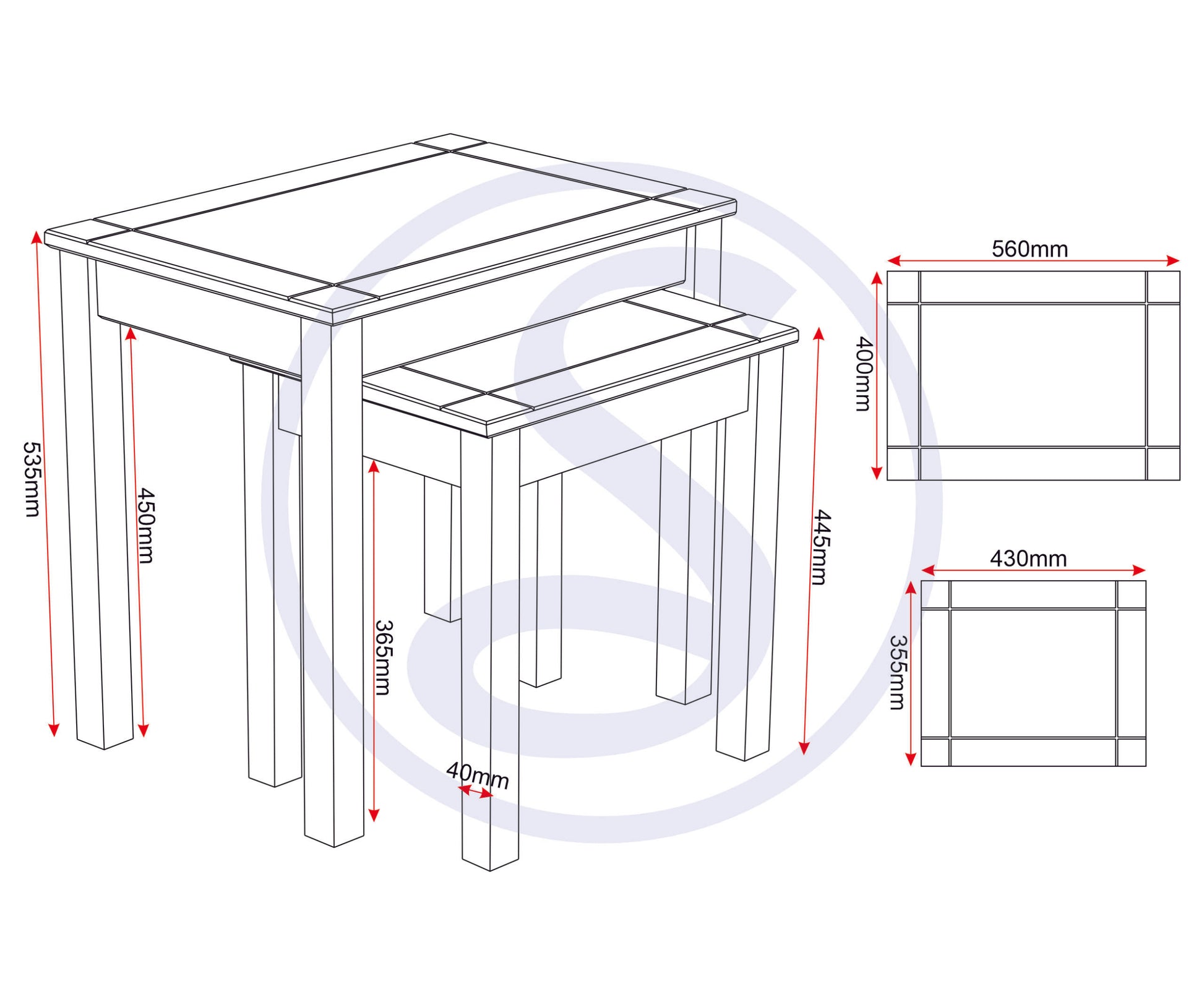 Assembled Sizes W x D x H (MM)