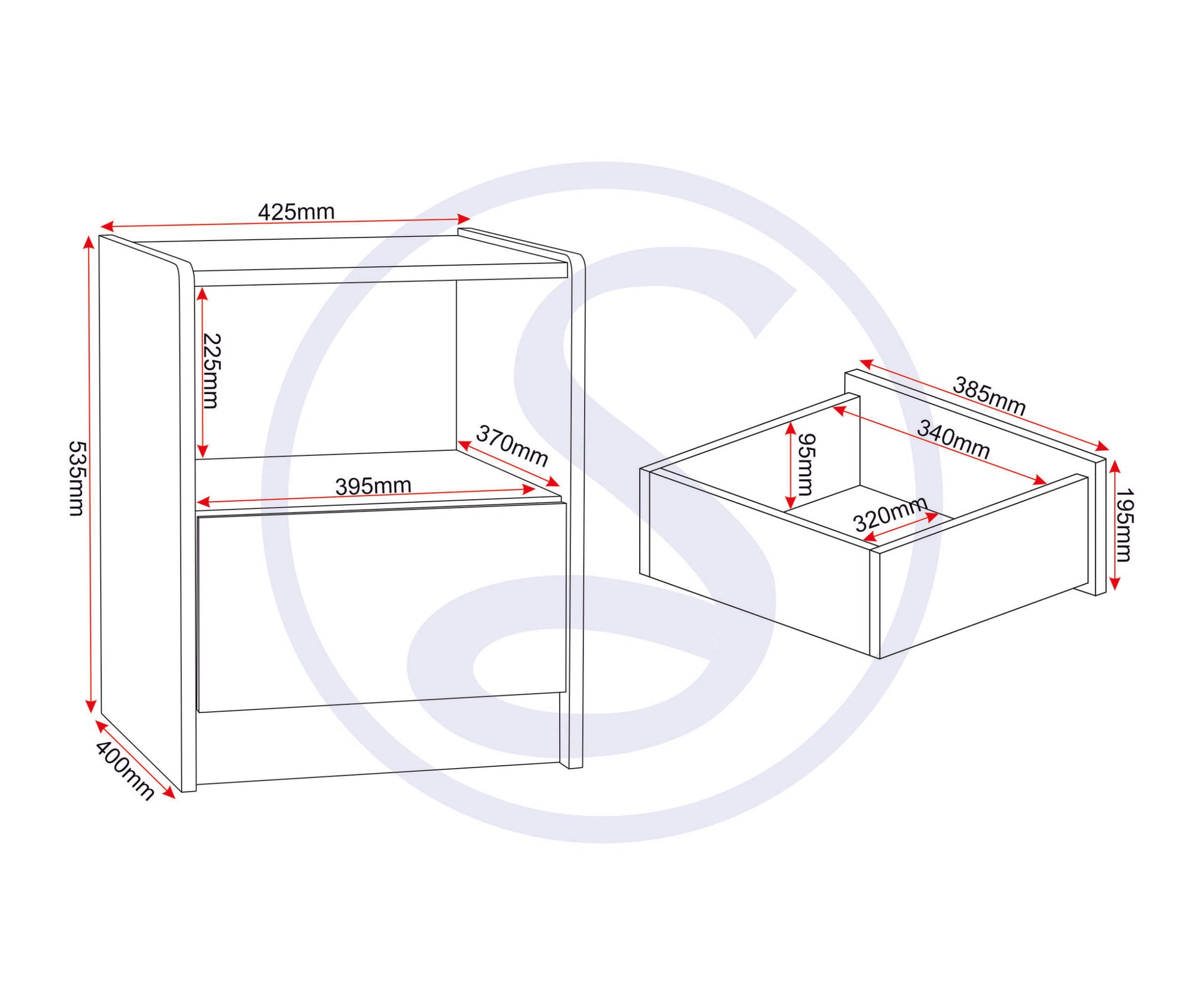Paris 1 Drawer Bedside - Smoked Ash Effect