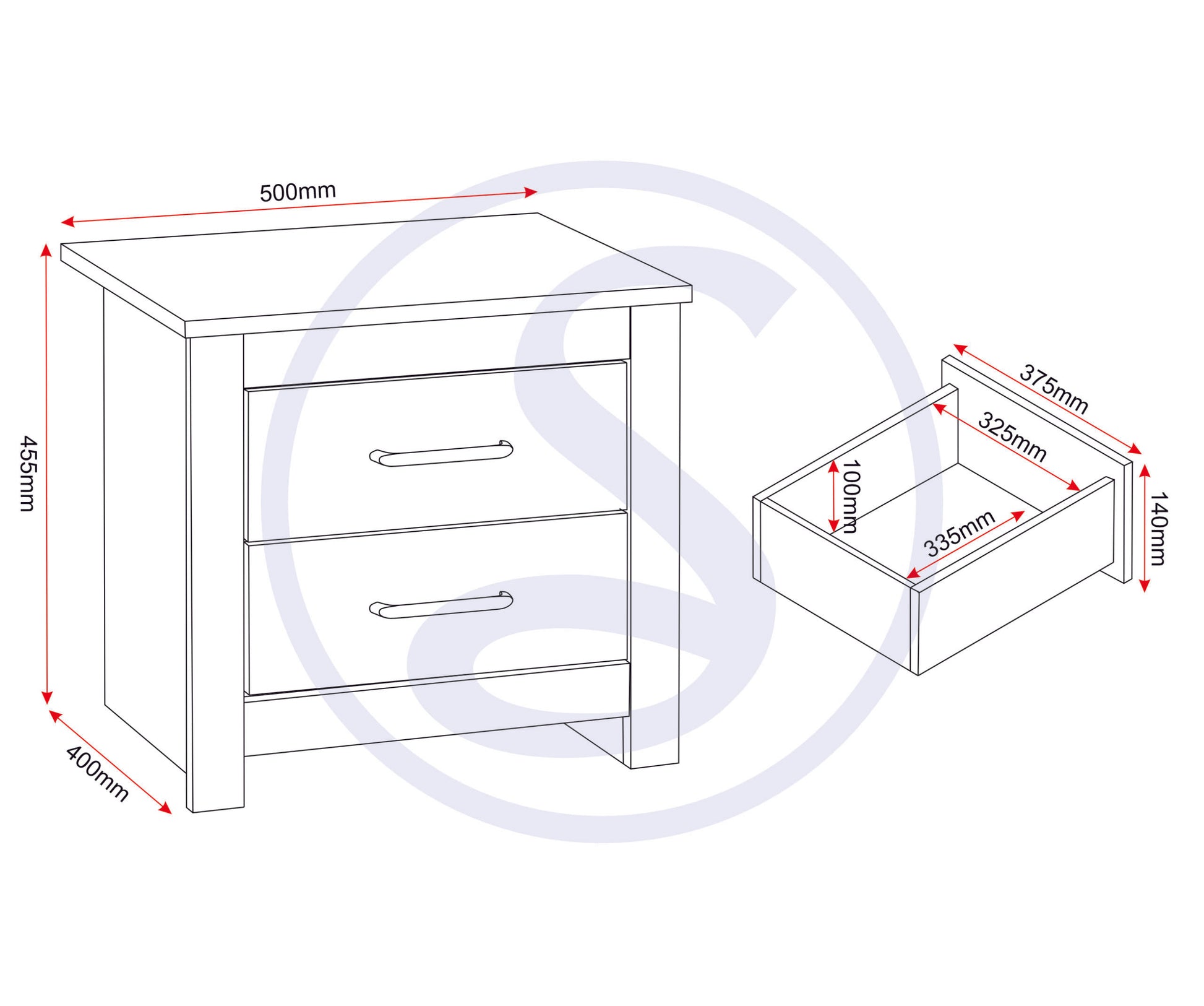 Portland 2 Drawer Bedside - Grey/Oak Effect