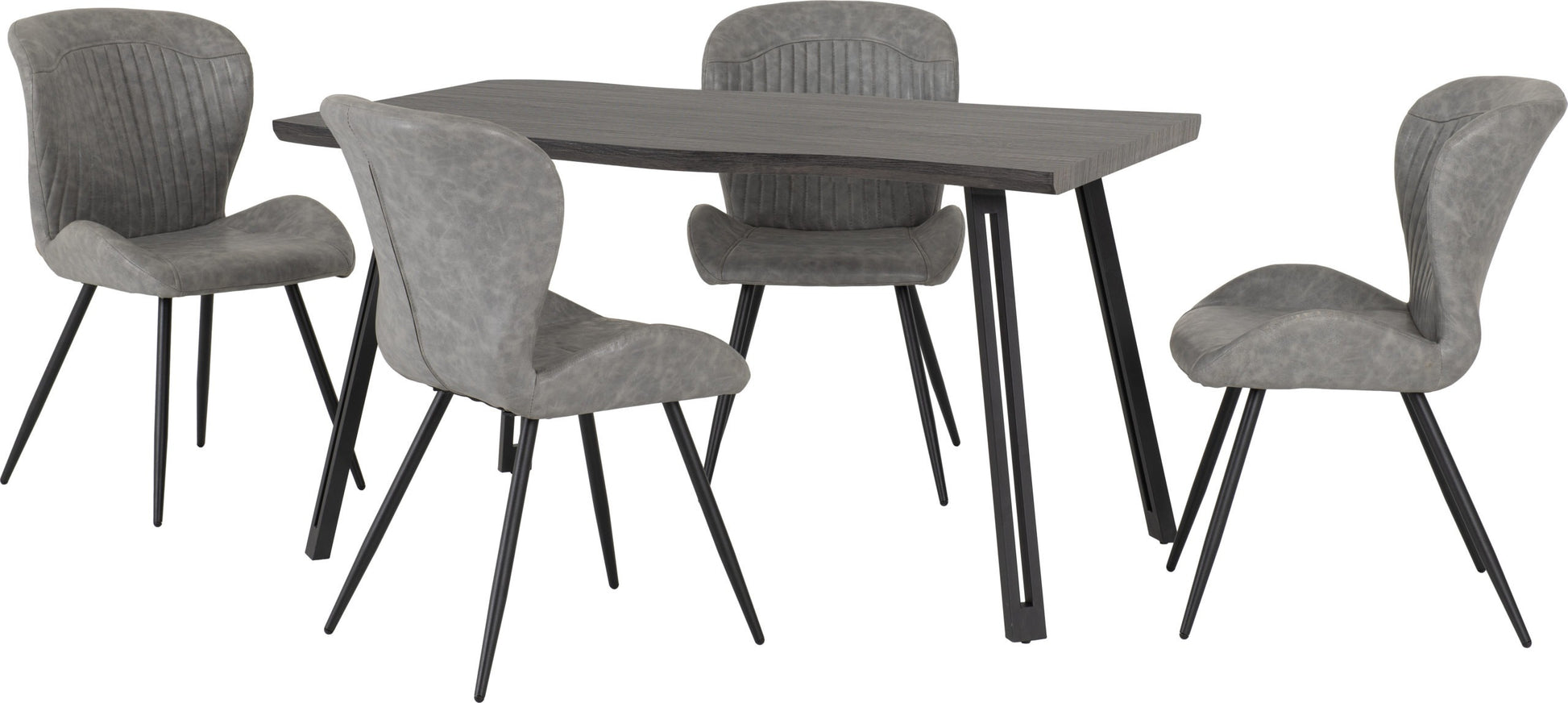 Quebec Wave Edge Dining Set (X4 Chairs) - Black Wood Grain/Grey Pu