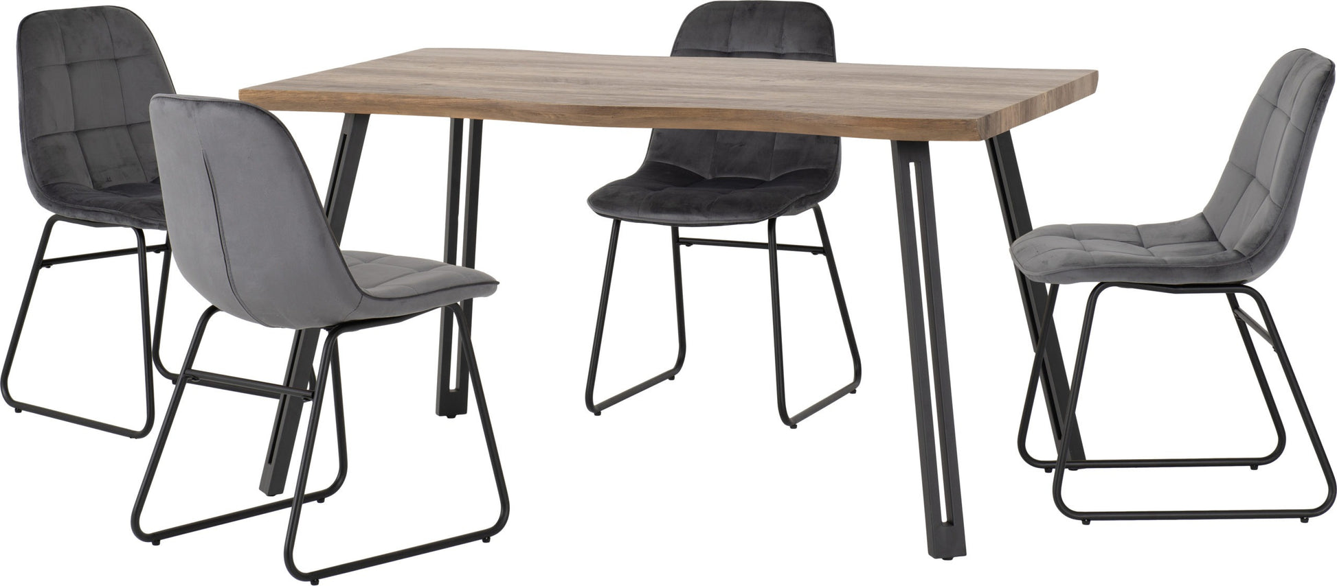 Quebec Wave & Lukas Dining Set (X4 Chairs) - Medium Oak Effect/Grey Velvet
