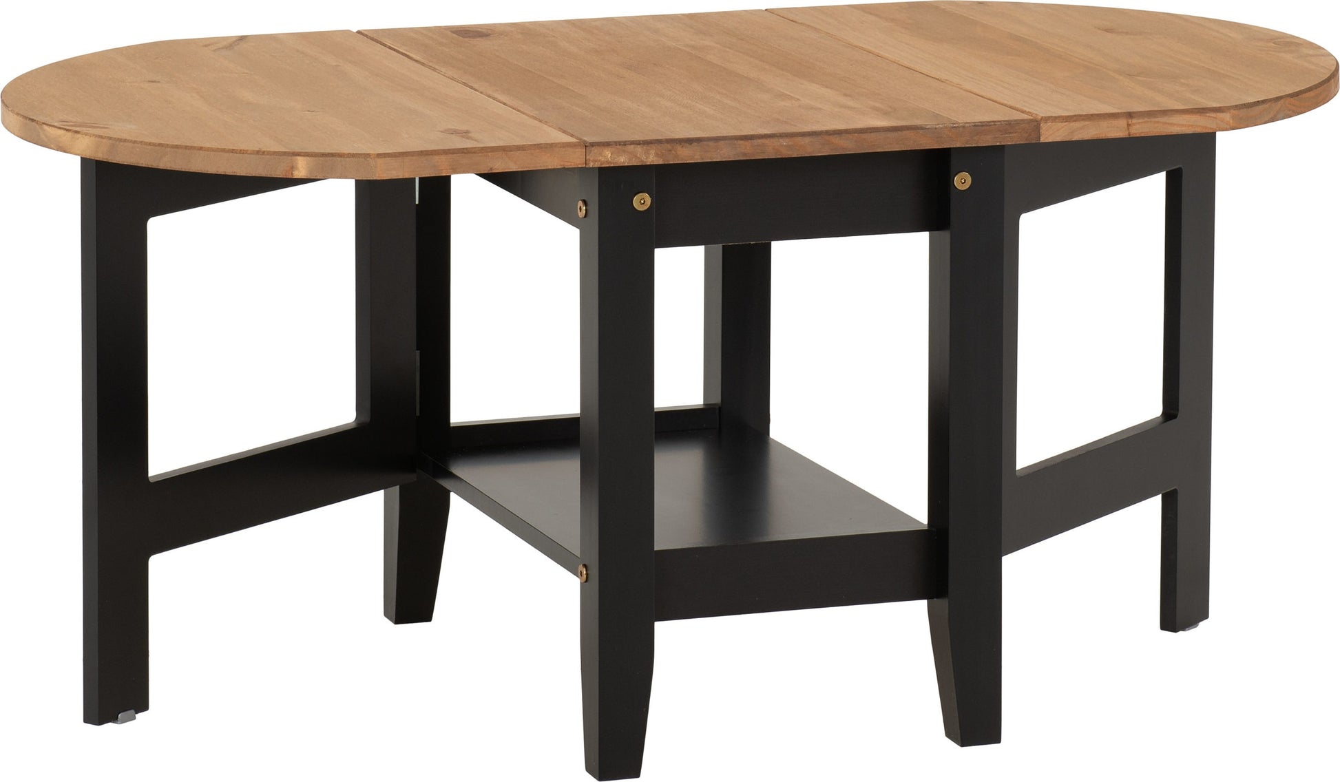 Santos Drop Leaf Coffee Table - Black/Distressed Waxed Pine